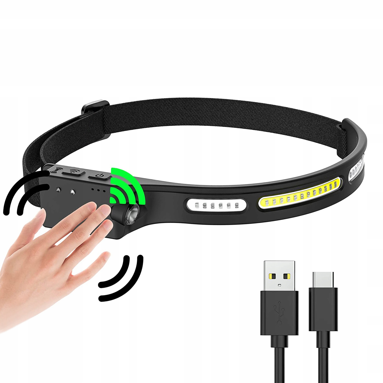 Аккумуляторный широкоугольный светодиодный фонарик COB со встроенным датчиком движения. Оснащен регулируемым ремнем.