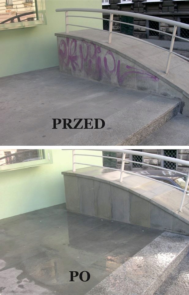 Внимание! - Для достижения эффекта удаления граффити с пористых материалов, для смывания растворенных красок для граффити обязательно используйте мойку высокого давления с теплой водой.
