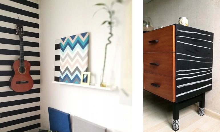 В галерее представлены примеры оформления детской комнаты с использованием черной краски для классной доски.