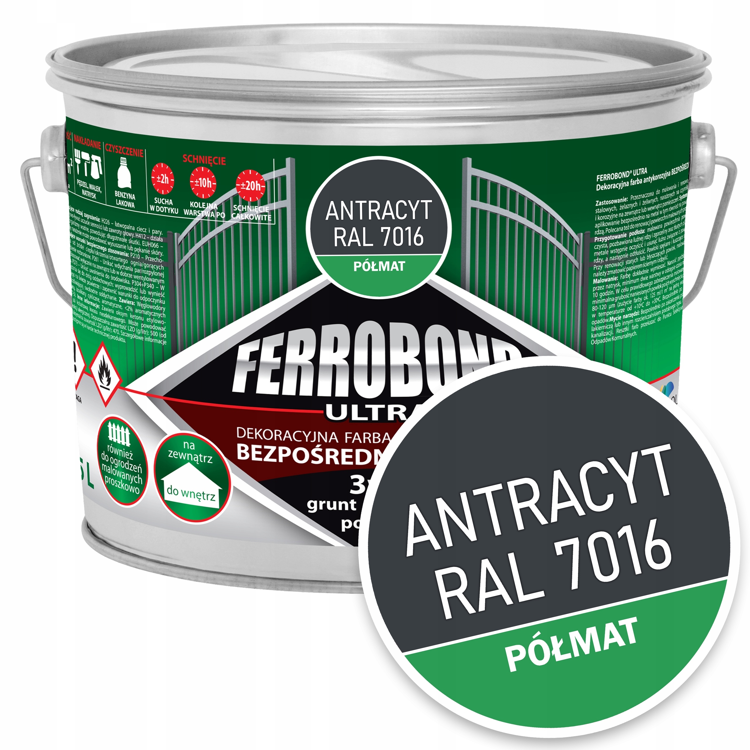Краска для чугуна и металла от ржавчины АНТРАЦИТ ПОЛУМАТОВЫЙ RAL 7016 2.5L Ferrobond Ultr