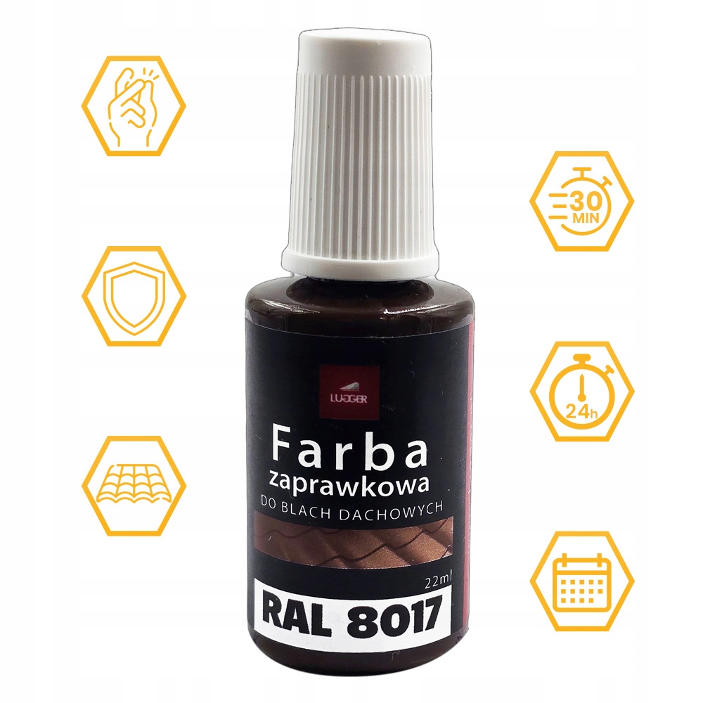 КРАСКА ДЛЯ ПОДРЕШЕНИЯ J. КОРИЧНЕВАЯ ДЛЯ СТАЛЬНОЙ КРОВЕЛЬНОЙ ЛИСТЫ 22 мл RAL 8017 LUGGER