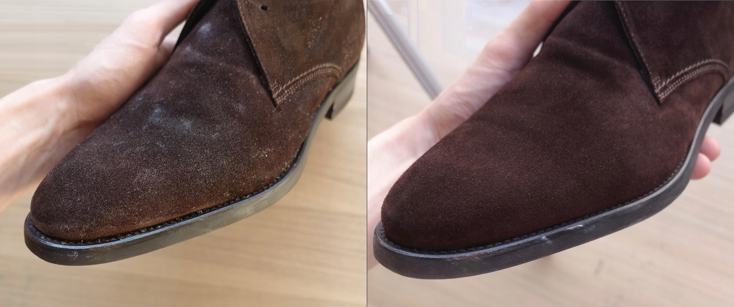 - Используя кисть для замши. Тщательно очистите нубук или замшу.