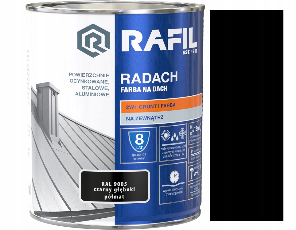 Rafil Radam Rook Paint Black Ral Ral 9005 0,75L Half -Matte