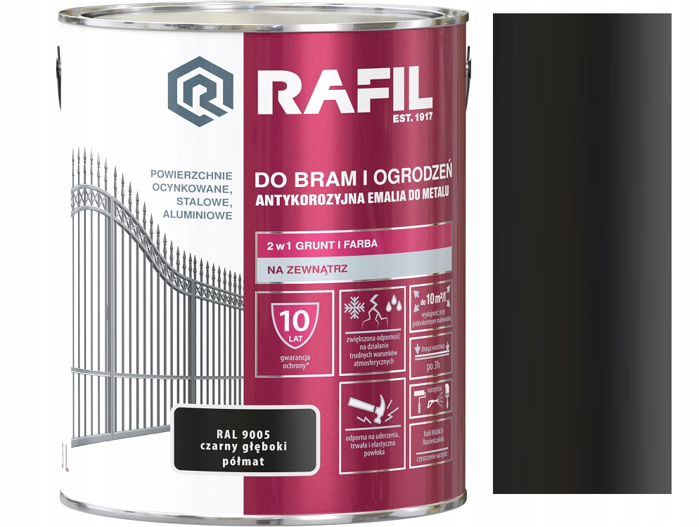 антикоррозивная эмалевая рафил для ворот и заборов предназначена для защитной и декоративной живописи металлических поверхностей: сталь, оцинкованные и алюминиевые эксплуатации на открытом воздухе.