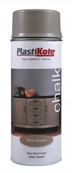 PLASTIKOTE CHALK SPRAY — меловой спрей, предназначенный для декора. Придает предметам старинную матовость. смотреть. Его используют в сфере отделки, дизайна, ремонта мебели, а также дизайна интерьера и создают по-настоящему красивые конструкции с винтажным эффектом. Независимо от того, витрины ли это, сундуки, рамки для фотографий, столы, предметы декора, сундуки или кассеты – все эти предметы можно отреставрировать меловыми лаками для придания так называемого старомодного вида. Создает ультраматовое покрытие.