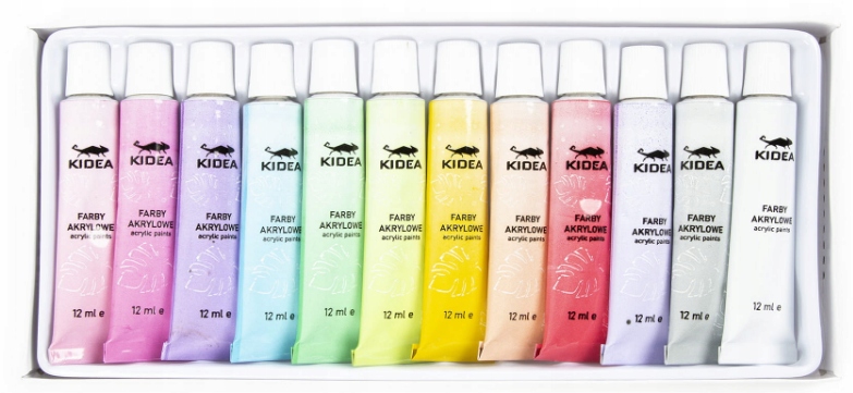 Акриловые краски 12 пастельных оттенков от KIDEA понравятся каждому маленькому художнику. Хорошо укрывающие и чрезвычайно эффективные краски позволят создавать уникальные произведения искусства, насыщенные красками. Сжимаемые тюбики с крышкой позволяют брать нужное количество продукта. Кроме того, смешивая краски, вы получите еще больше неповторимых оттенков! Пастельная цветовая палитра уже много лет популярна как среди детей, так и среди взрослых. Краски отлично подойдут для весенних и летних арт-проектов. Более того, акриловые краски подходят для рисования не только на бумаге или холсте, но и на дереве, стекле и камне!