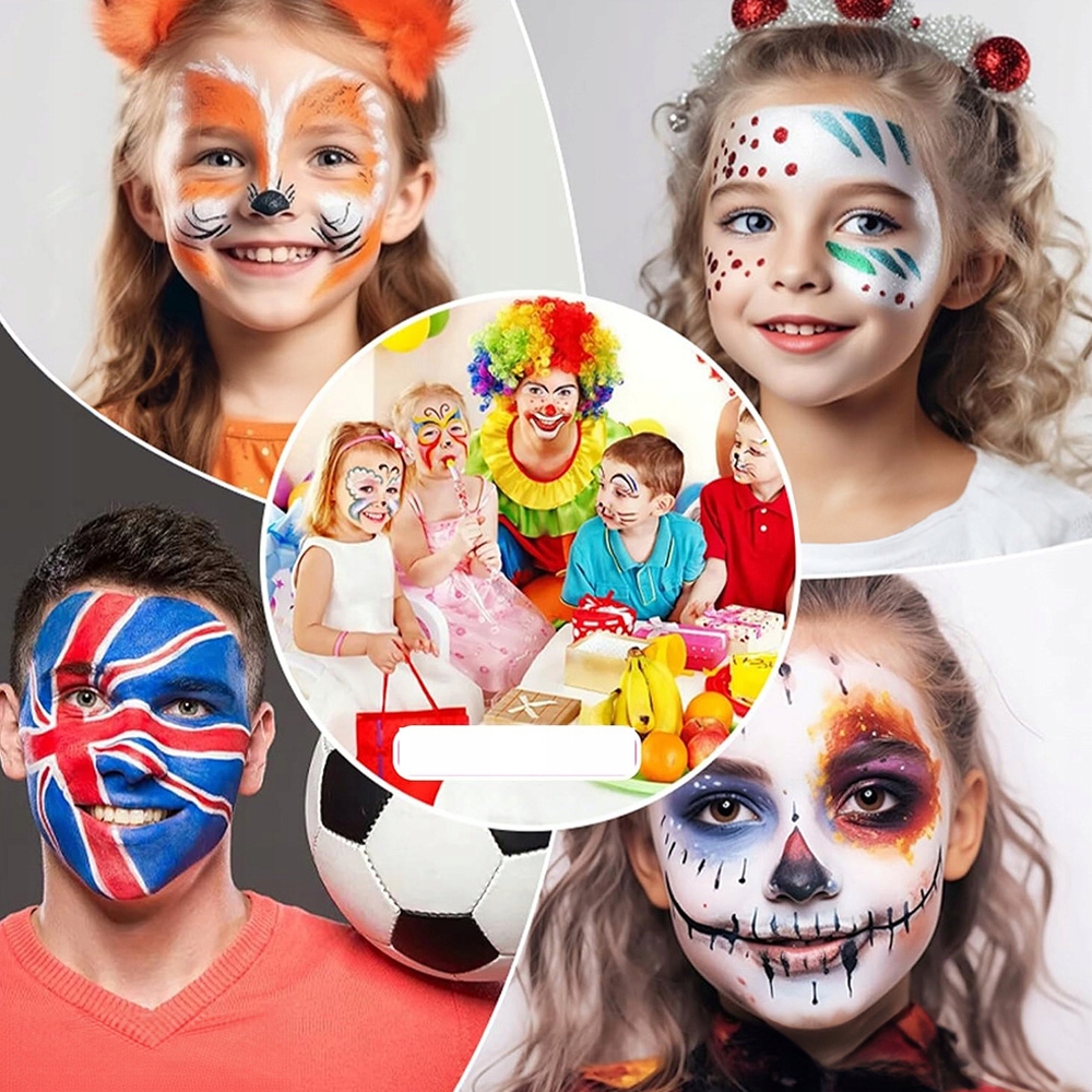 ⏺️⏺️Универсальность: Сделайте любое мероприятие незабываемым с этим набором для макияжа! Идеально подходит для дней рождения, карнавалов, школьных вечеринок, рождественских костюмированных вечеринок, праздничных вечеринок, крупных спортивных мероприятий, сценических представлений, тематических костюмированных вечеринок и других случаев.