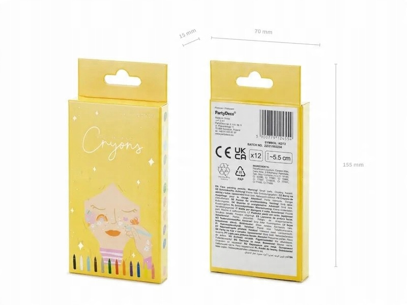 ФАРБИ ПРЕМІУМ ФАРБИ ДЛЯ ЛИЦЯ 12 КОЛЬОРІВ. ДИТЯЧІ ОЛІВЦІ, ЩО МИЮТЬСЯ