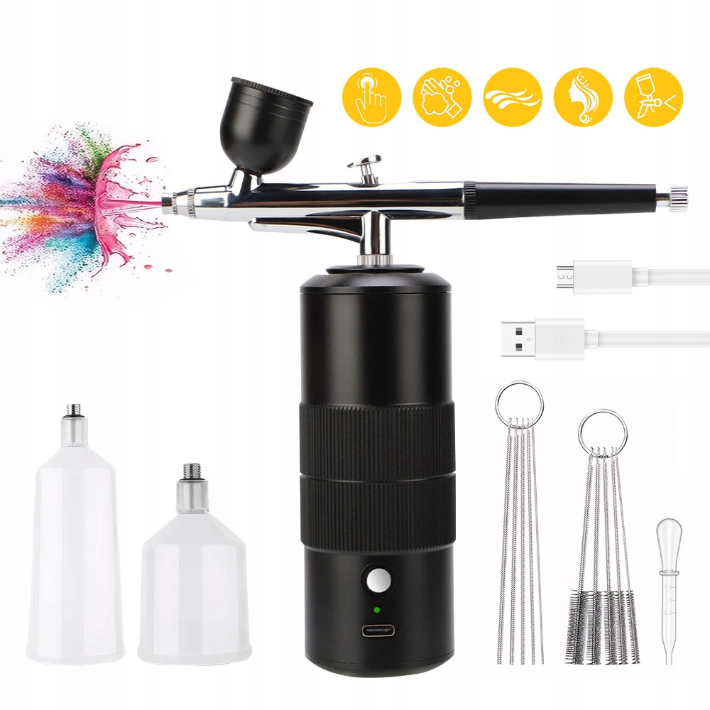 ✅С помощью аэрографа можно создавать разнообразные произведения искусства на ногтях, моделях, тортах, одежде, холстах и многих других поверхностях. В аэрографе можно использовать такие материалы, как акварельные краски, красители, чернила и т. д. (Примечание: после получения комплекта аэрографа полностью зарядите его перед использованием, но не используйте аэрограф во время зарядки).