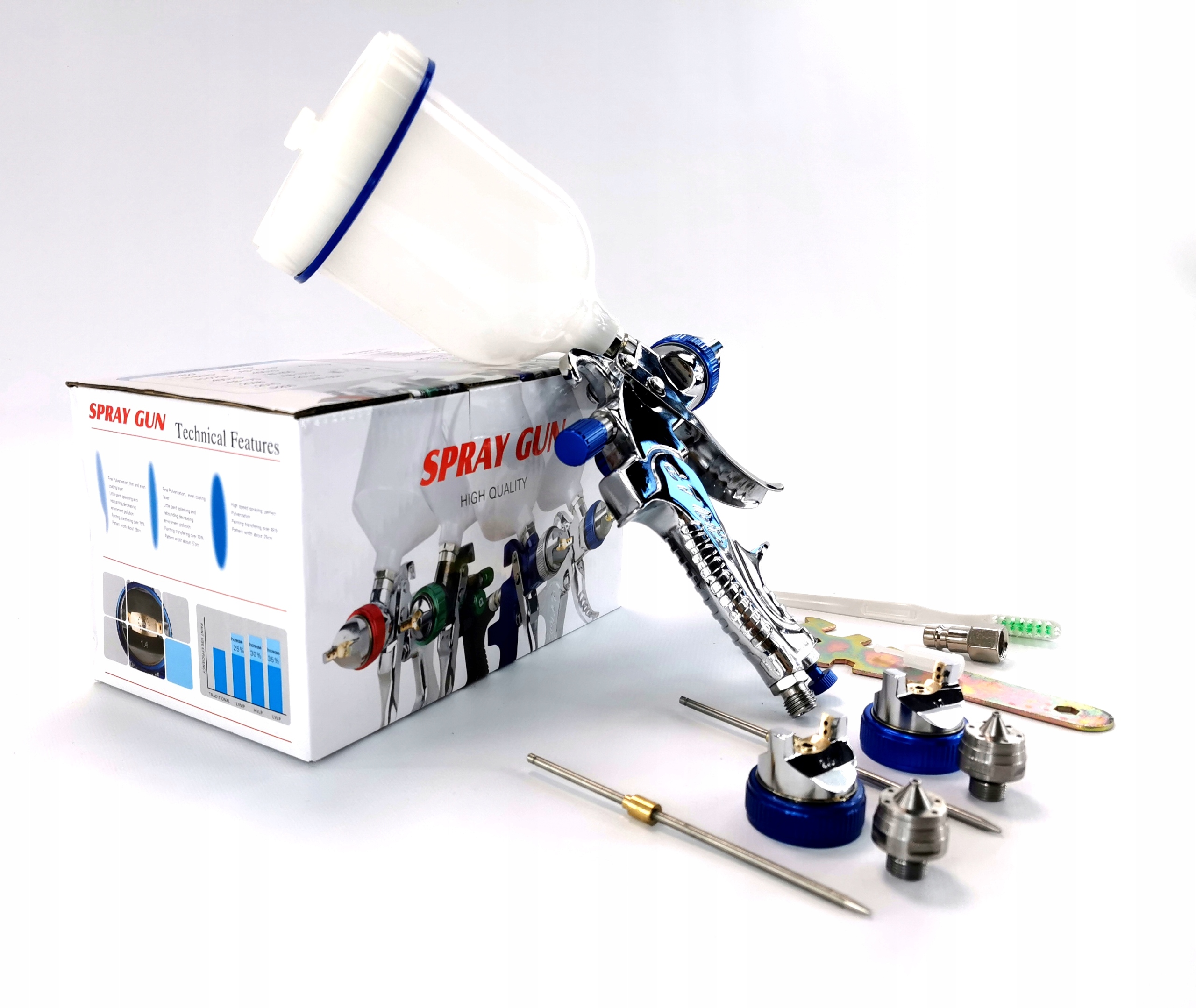 ФАРБОПІСТОЛЕТ ДЛЯ ФАРБУВАННЯ 600мл HVLP 1.4 1.7 2.0 NOZZLES PRO SET