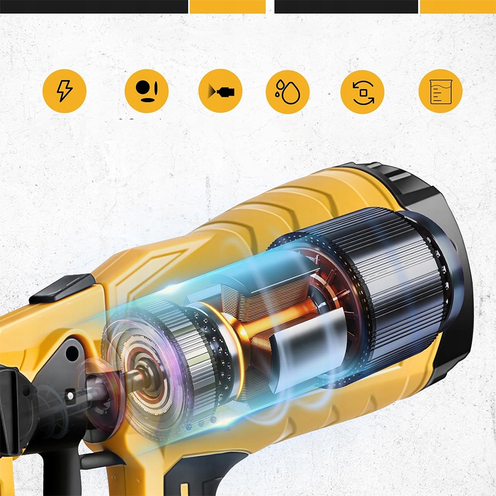 Краскопульты для окраски салона оснащены новой улучшенной латунной насадкой, которая предотвращает повреждения, вызванные падением или сдавливанием, не забивается и легко очищается. чистая уборка. Контейнер объемом 1000 мл обеспечивает достаточно краски для длительного распыления без необходимости частой дозаправки. Оснащен двумя аккумуляторами, которые полностью заряжаются всего за 2–3 часа, что значительно повышает эффективность работы.