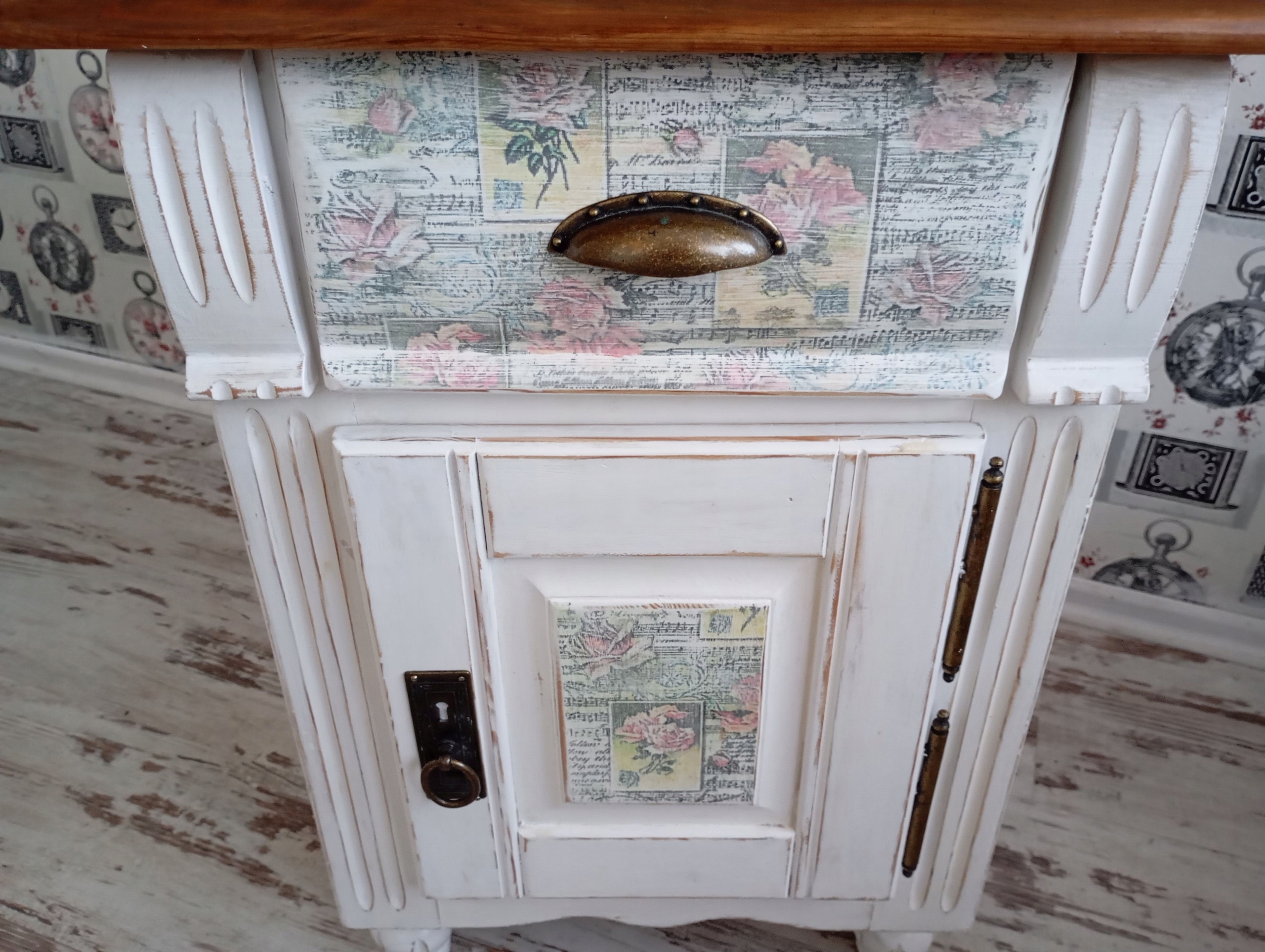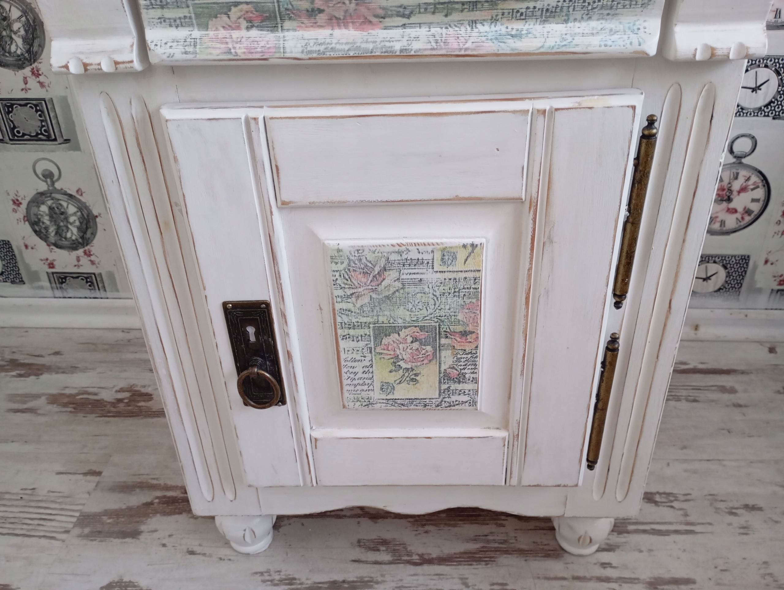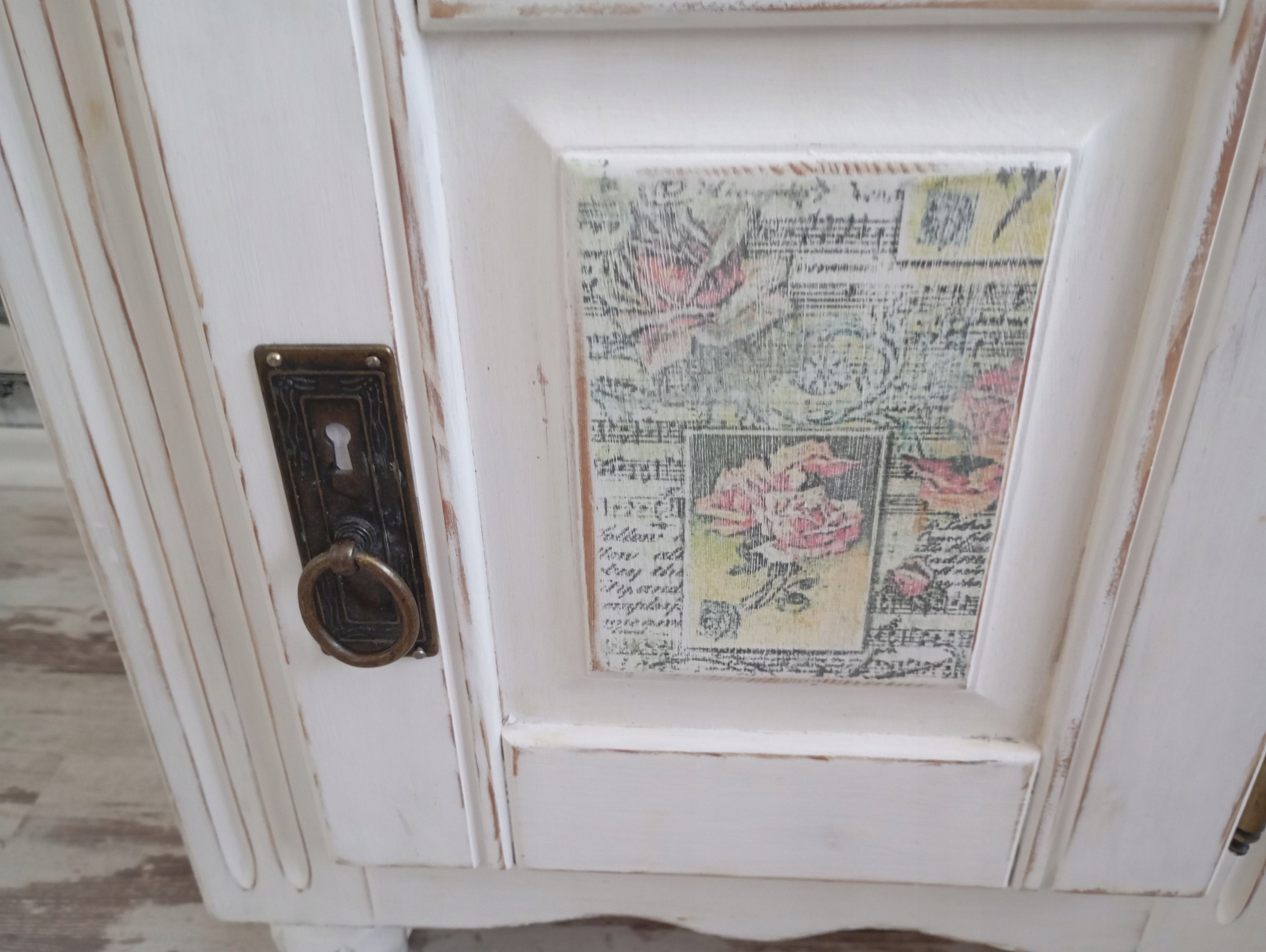 Дверь и ящик вручную декорированы мотивом розы.