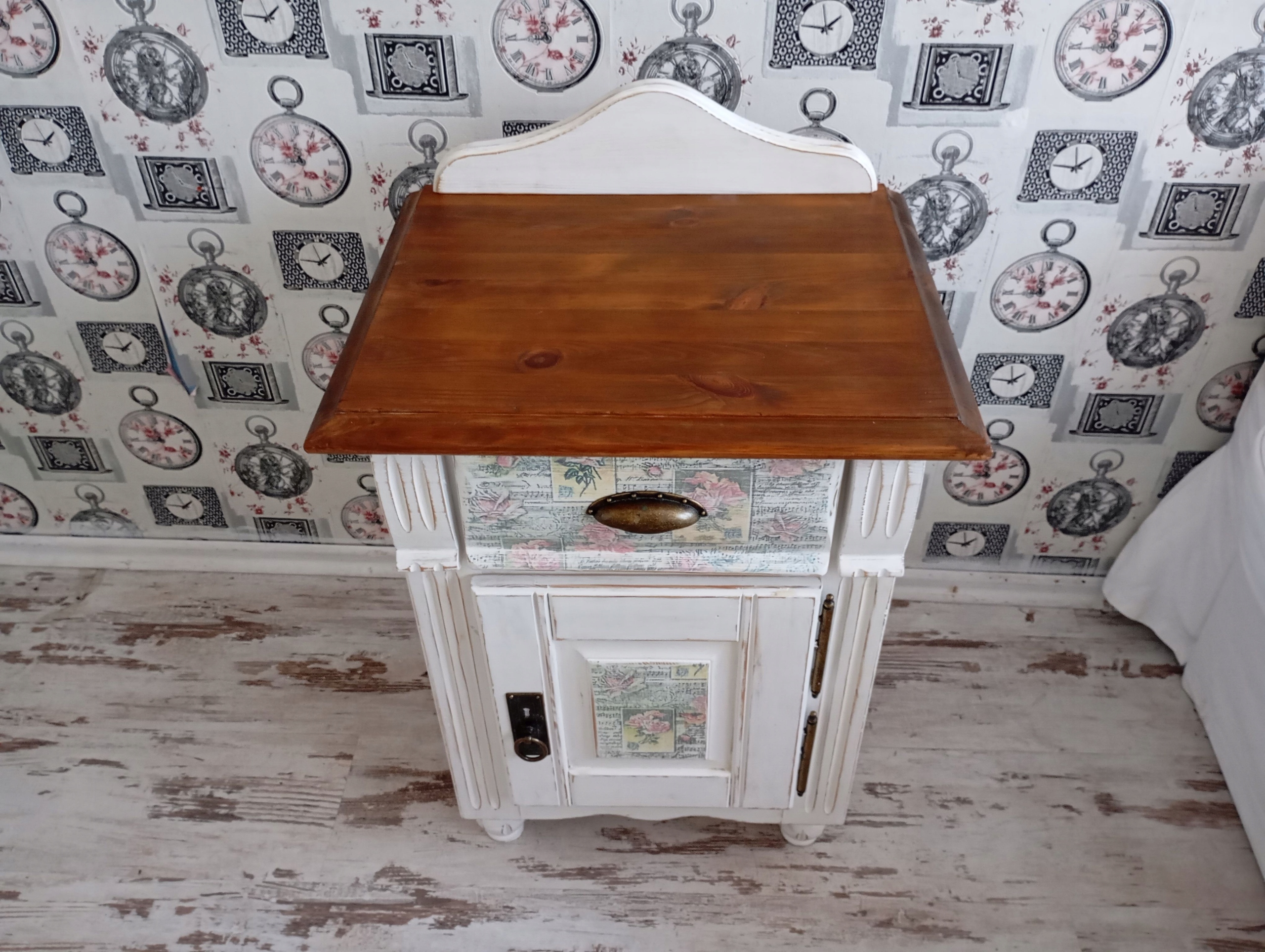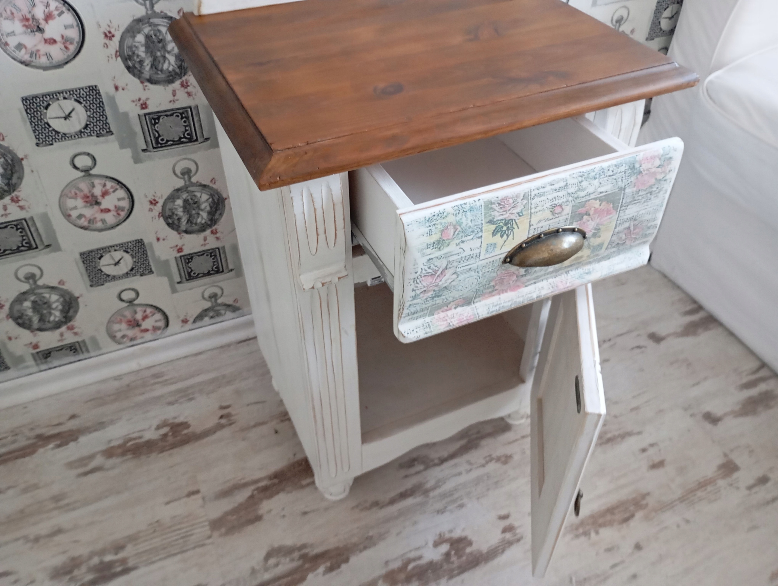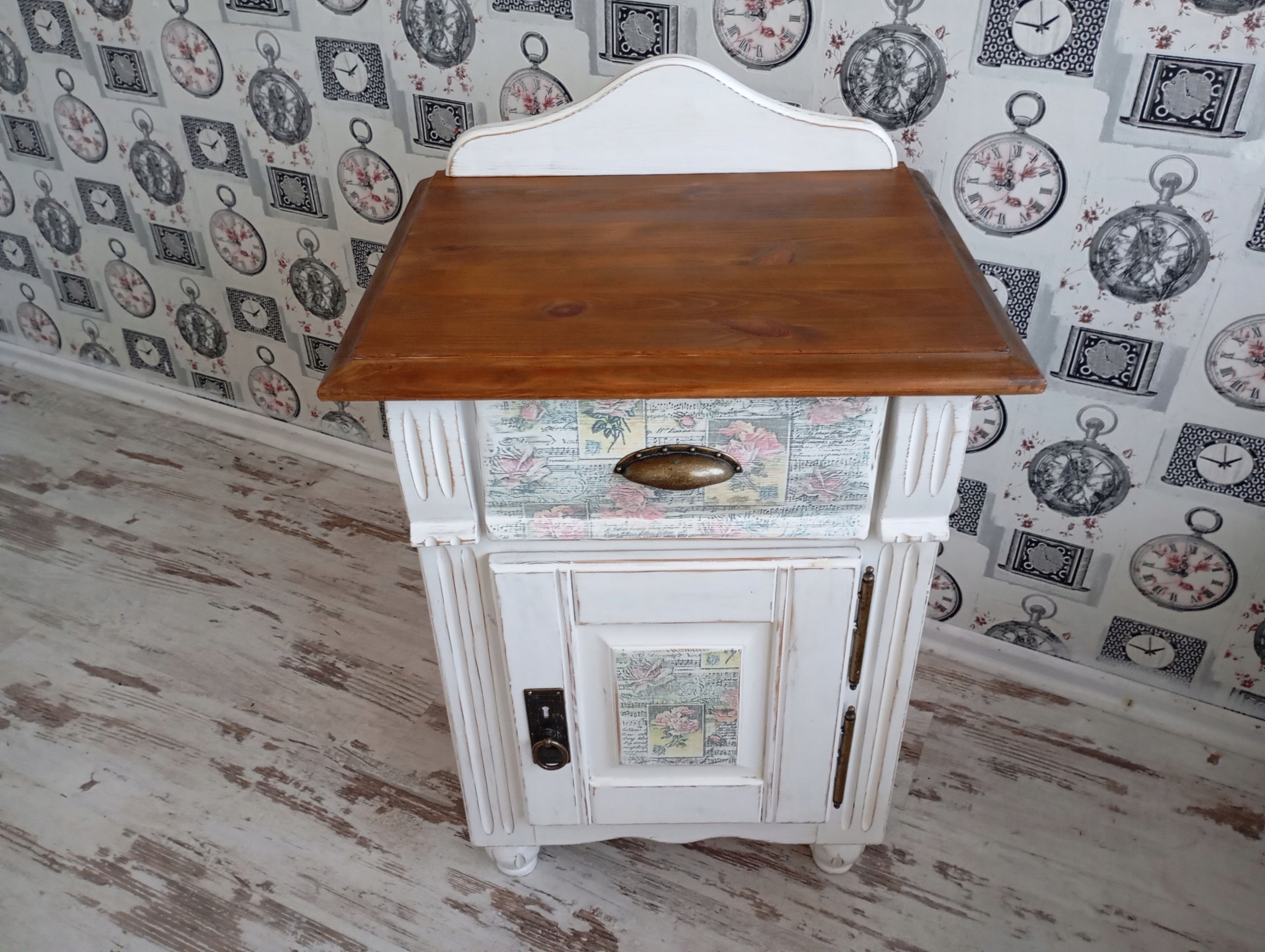 Дверь и ящик вручную декорированы мотивом розы.