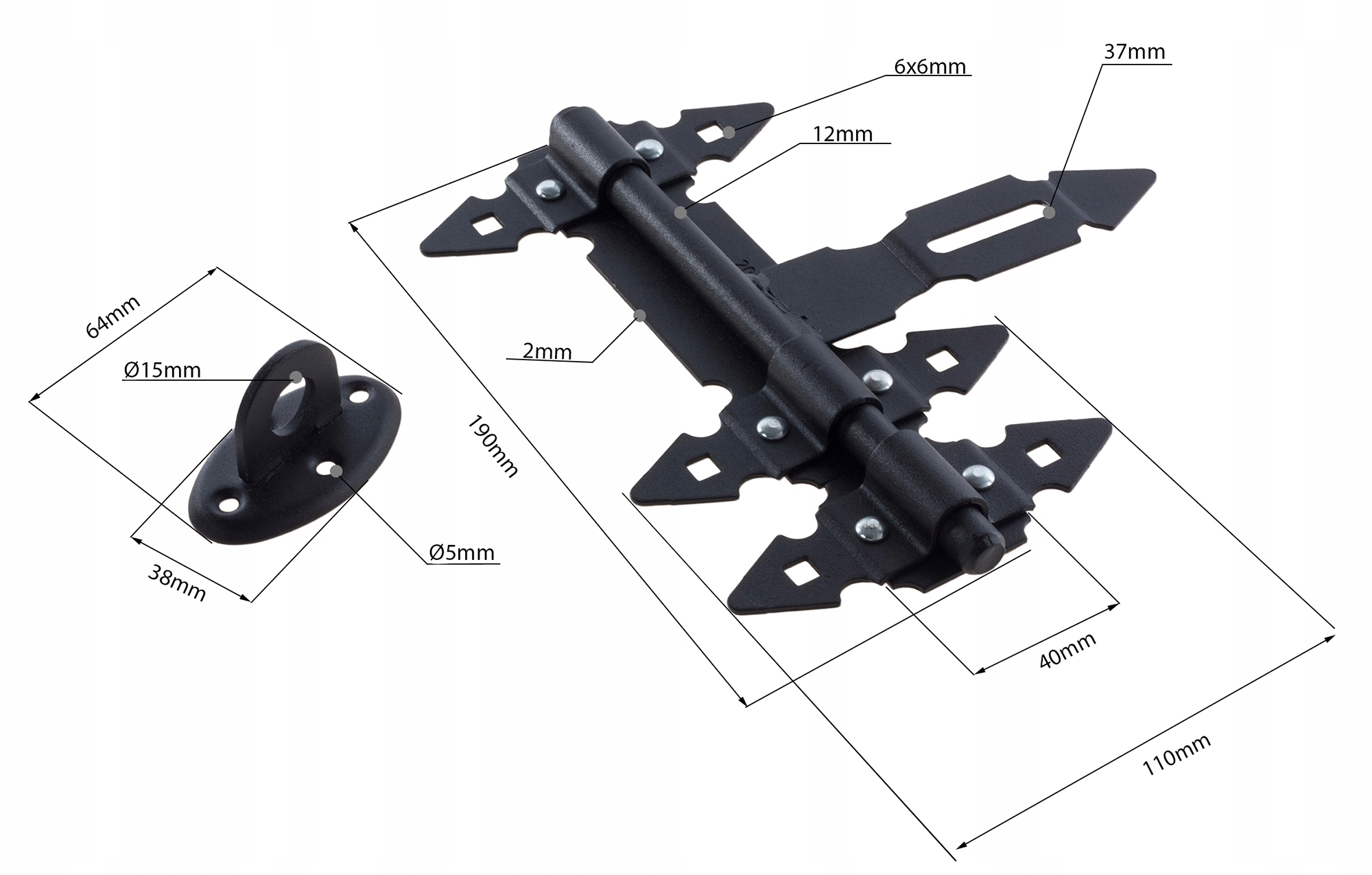 - Длина засова — 230 мм