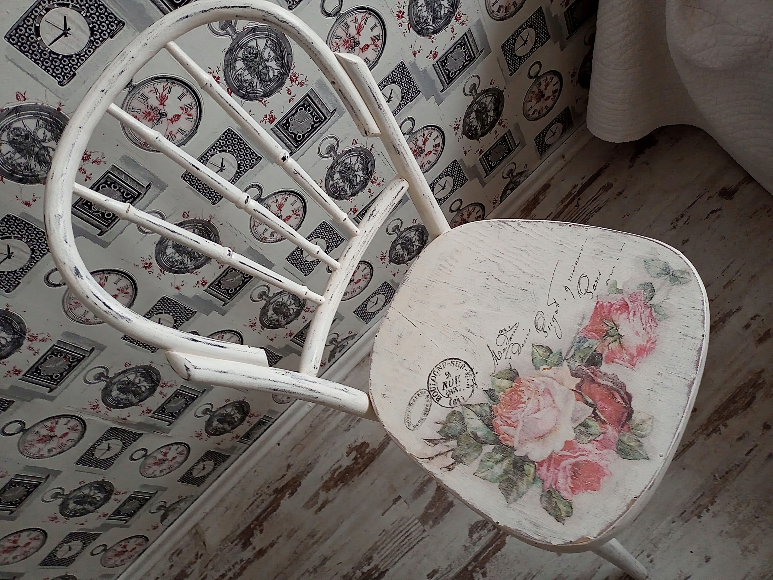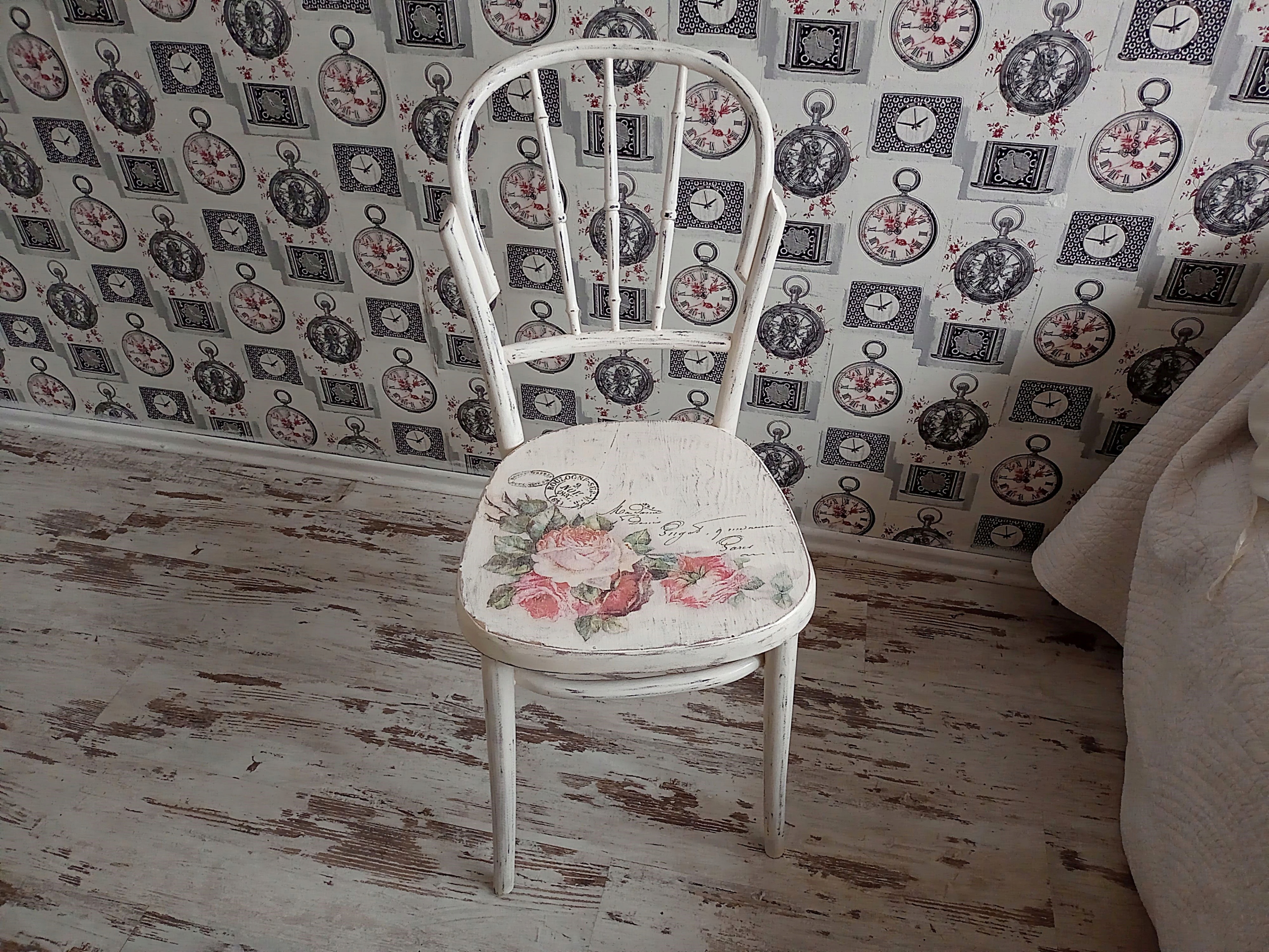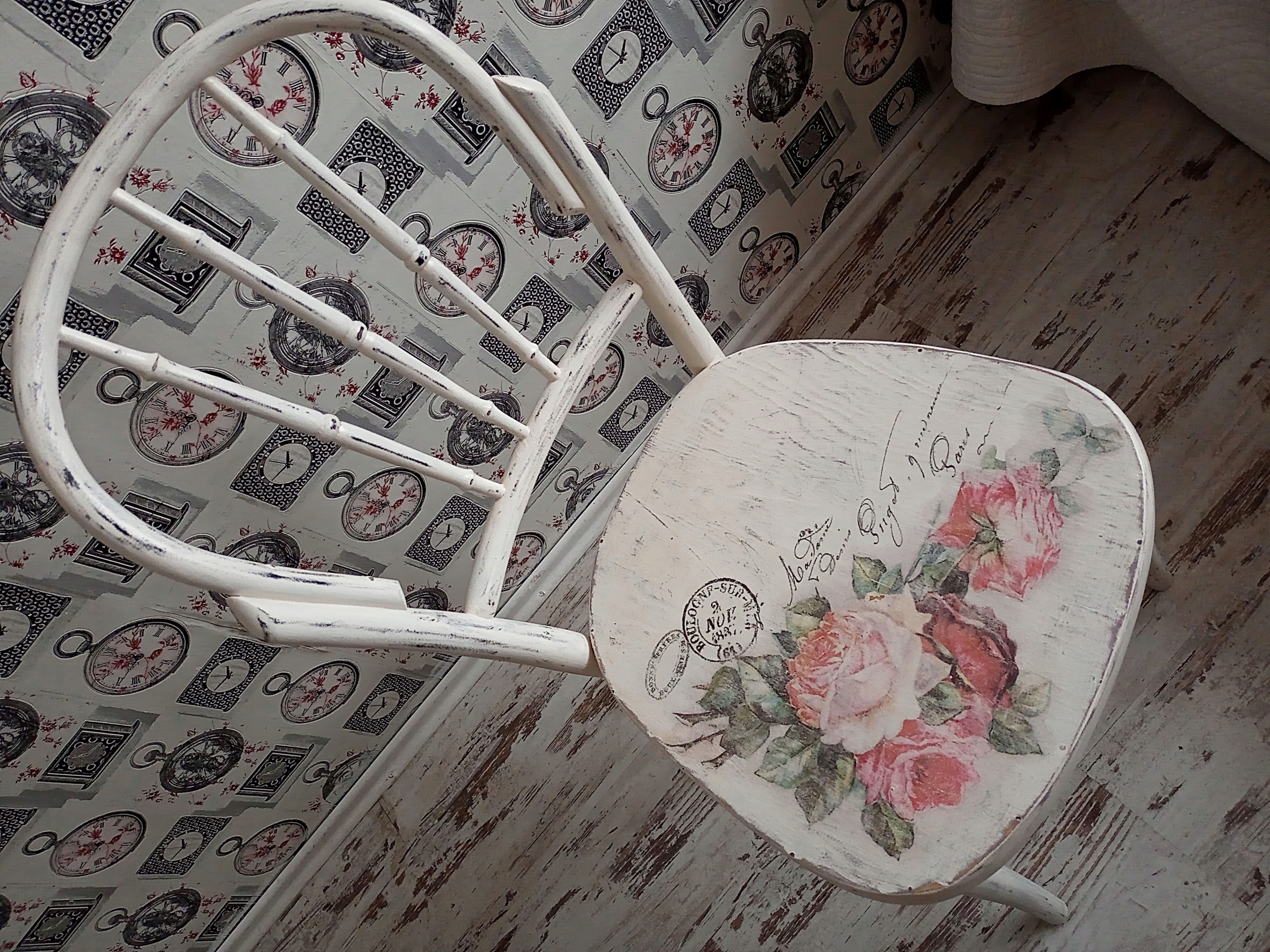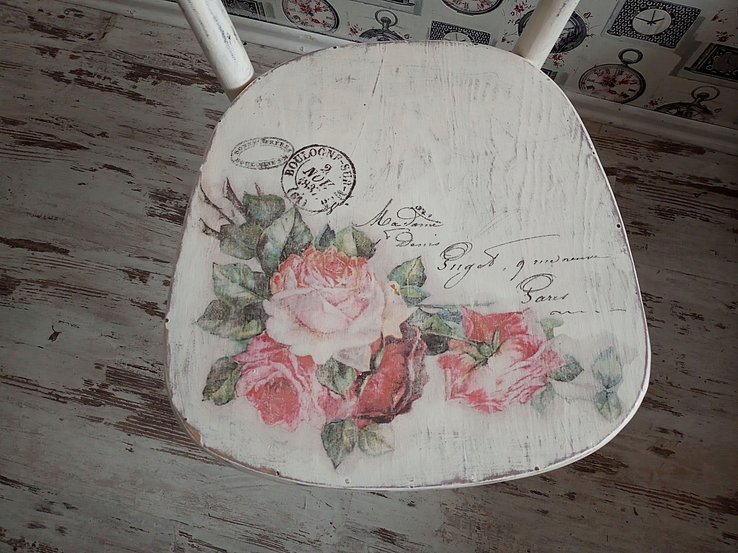 РАСКРАШЕННЫЙ СТУЛ, РОЗЫ, ШАББИ, ПОСЛЕ РЕМОНТА