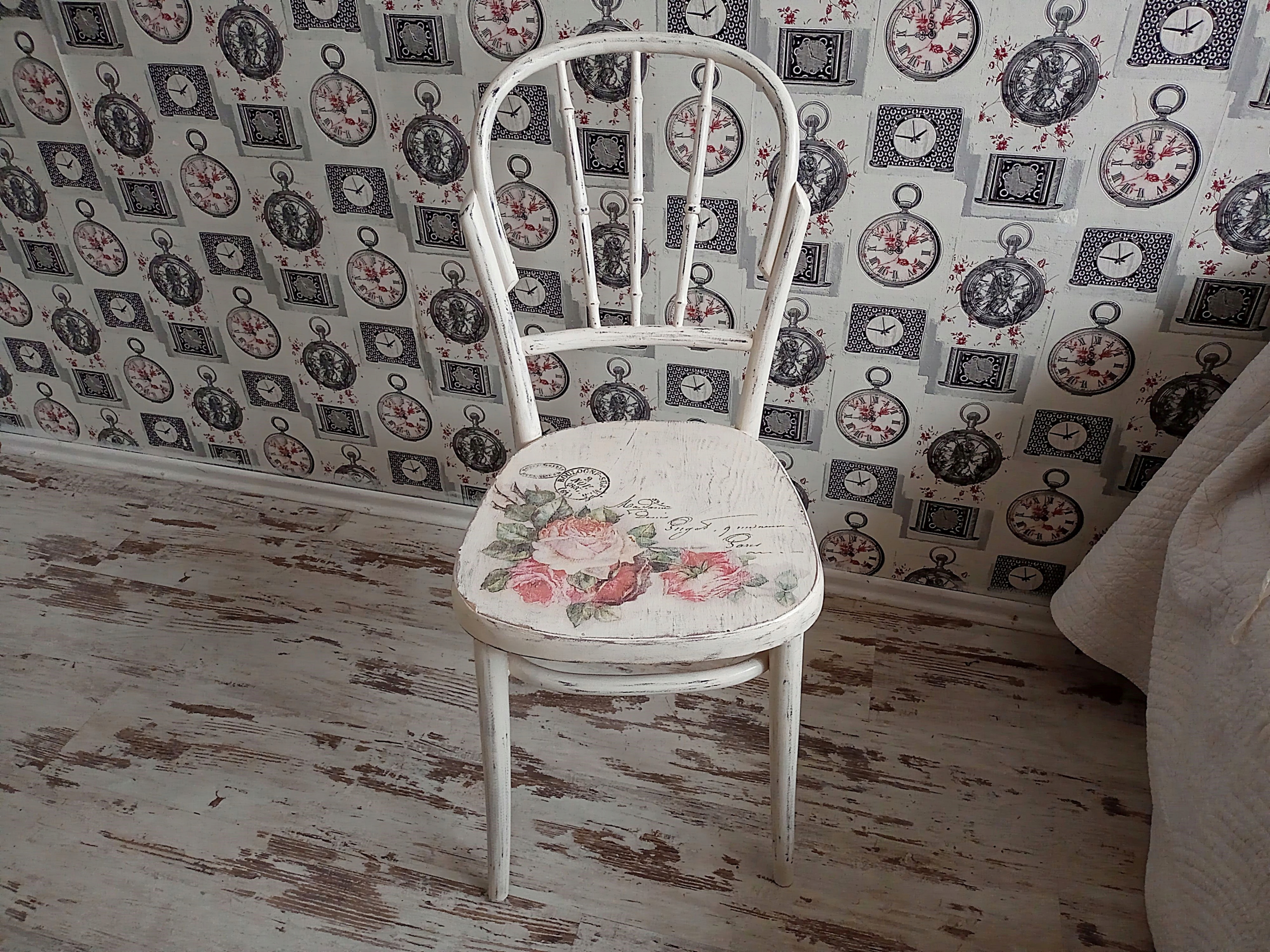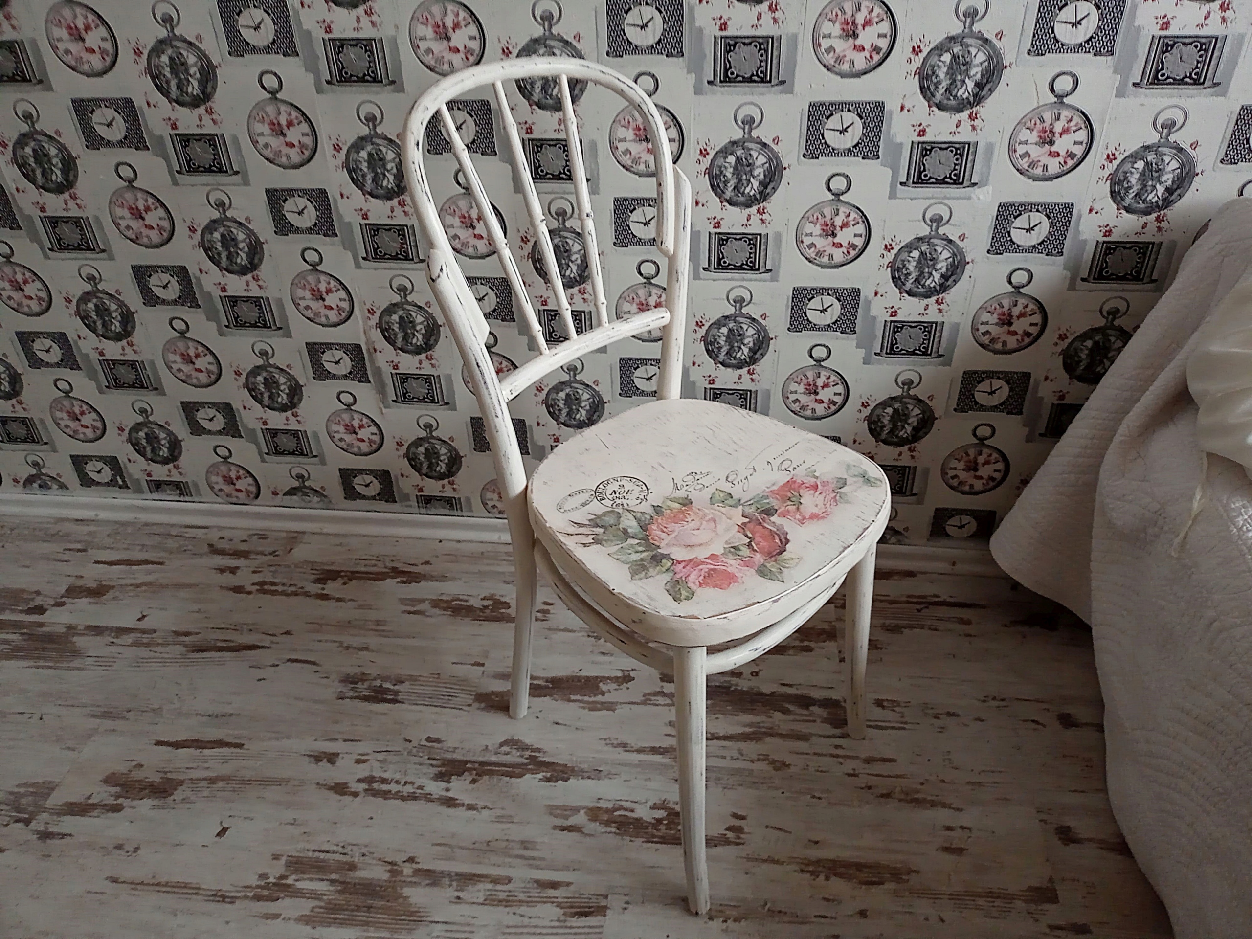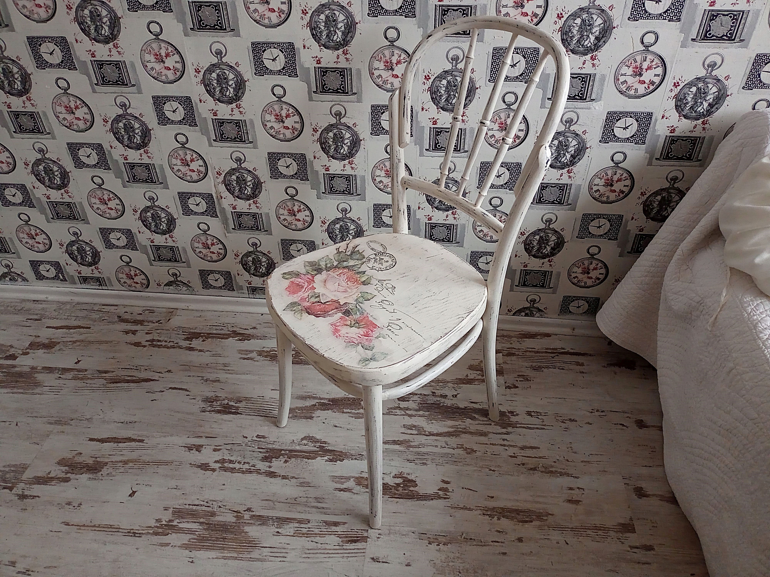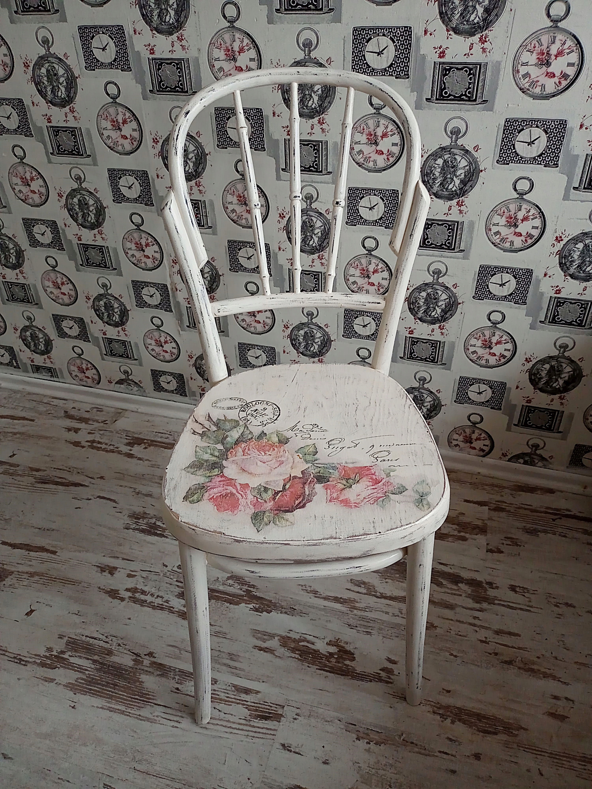 РАСКРАШЕННЫЙ СТУЛ, РОЗЫ, ШАББИ, ПОСЛЕ РЕМОНТА