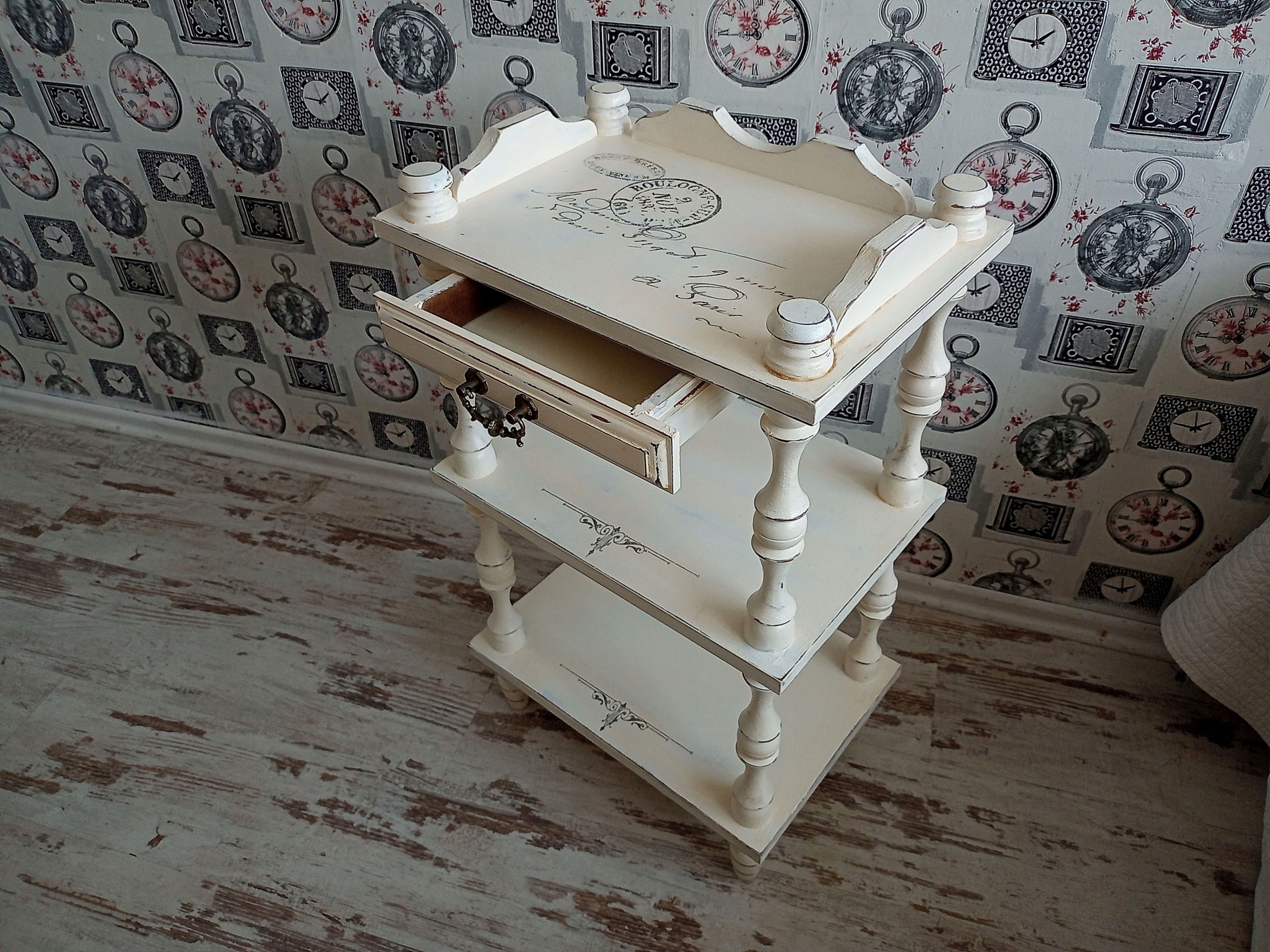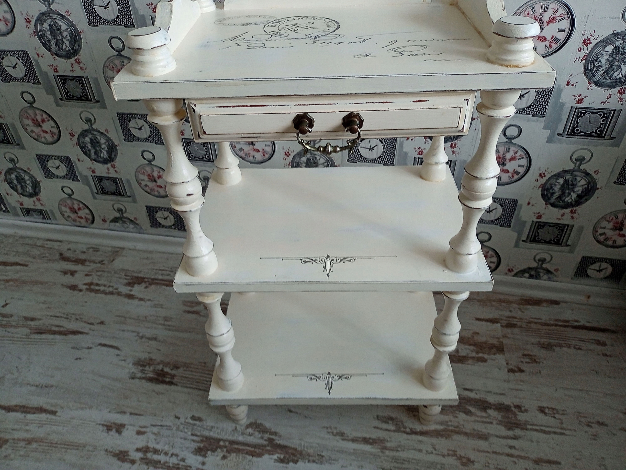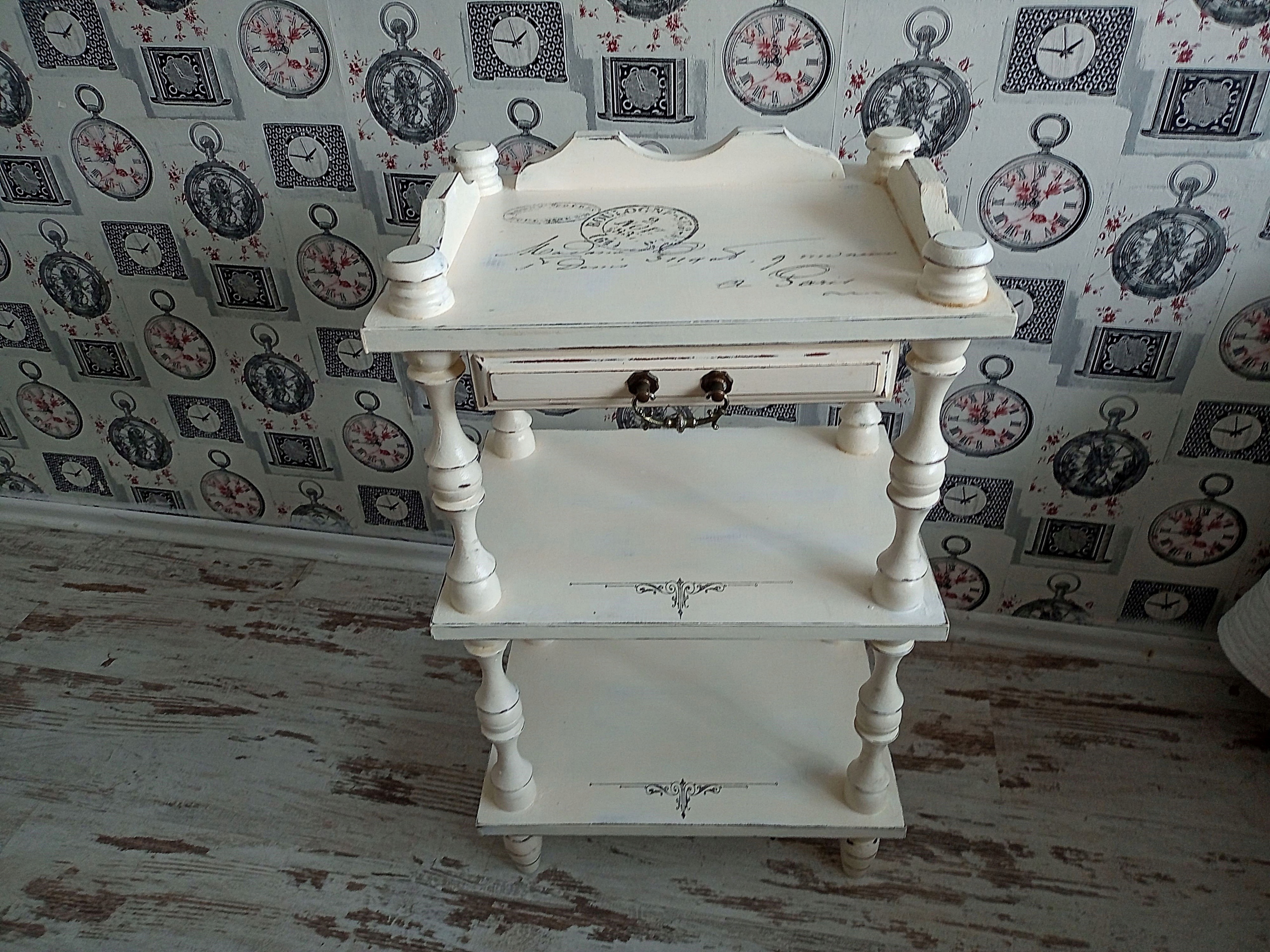 Деревянный столик с полками, стиль шебби-шик.