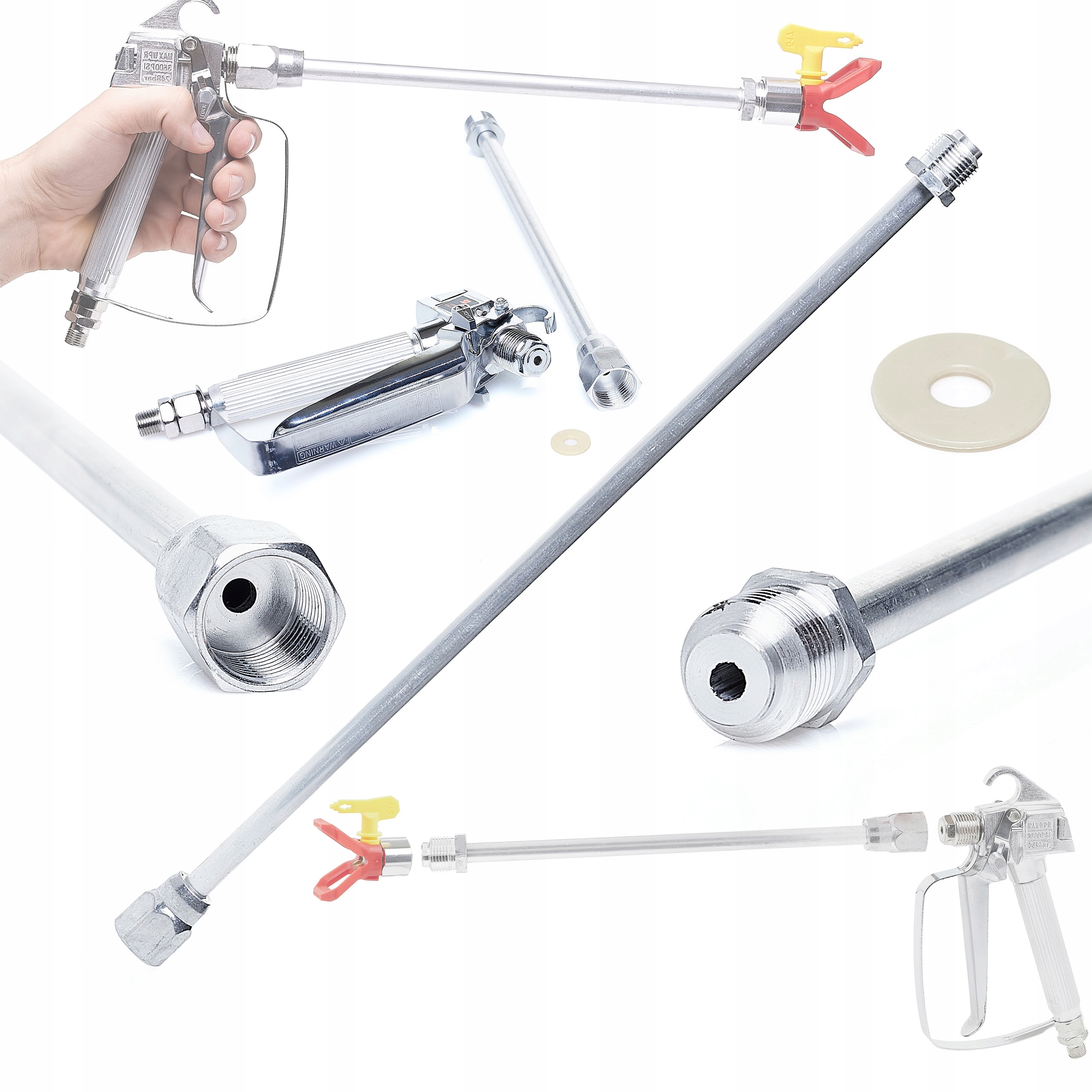 Копье для малярного пистолета длиной 50 см — это практичный инструмент, позволяющий удобно красить труднодоступные места и высокие поверхности без необходимости использования лестницы.