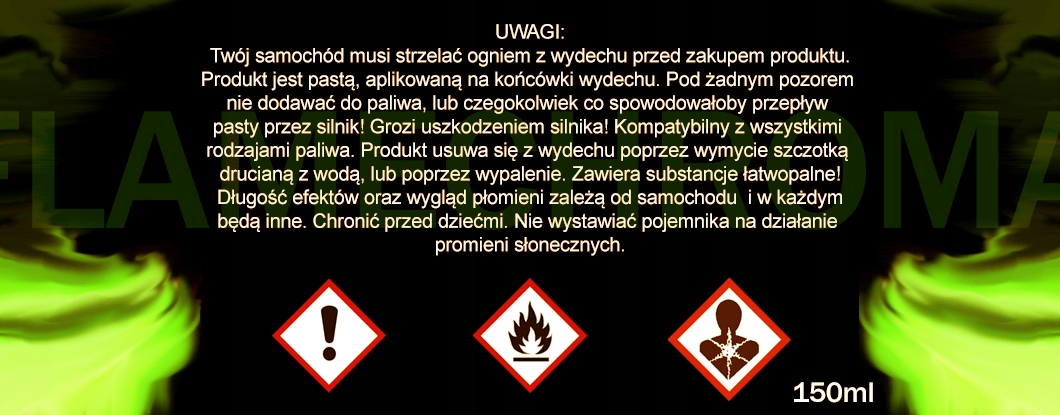 Зеленое эффектное пламя. Нет ничего более захватывающего, чем события, которых никто раньше не видел. Теперь все это доступно благодаря уникальной химической формуле, которая не только дает феноменальные результаты, но и на 100% безопасна для вашей выхлопной системы.