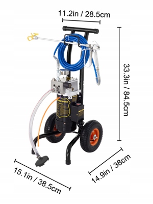 Подвижная и портативная конструкцияПодвижная тележка не ограничивает радиус действия, покрасочный агрегат с электроприводом и прочной ручкой для удобной транспортировки и подъема, удлинитель и шланг высокого давления длиной 15 м расширяют зону распыления.Комплект аксессуаров Стена и потолок малярные инструменты поставляются в полной комплектации, содержащей удлинитель, шланг высокого давления длиной 15 м, краскопульт, распылительную насадку и комплект монтажных принадлежностей для облегчения монтажа.Широкое применение.Малярные пистолеты предназначены для регулярного нанесения красок, в том числе эмульсии для масштабных проектов, покраски наружных фасадов и внутренних стен, защиты металлических корпусов и дерева.