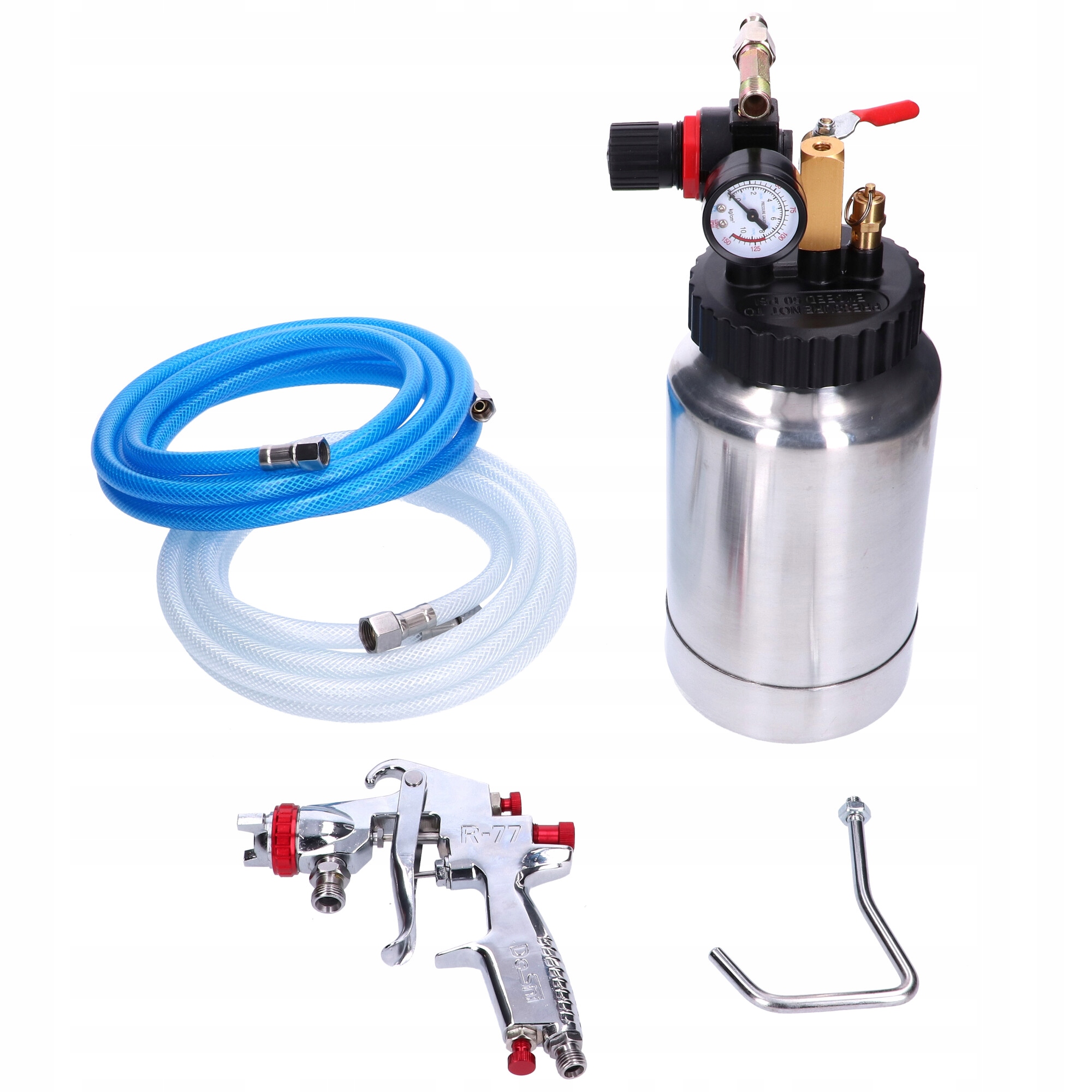 В комплекте имеется бак из алюминия объемом 2 л с установленным на крышке редуктором давления с манометром и предохранительным клапаном.