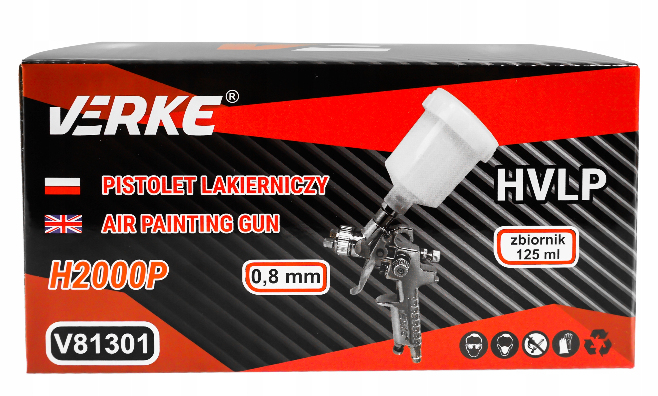 ПИСТОЛЕТ ДЛЯ ПОКРАСКИ HVLP H2000P 0,8мм 125мл VERKE