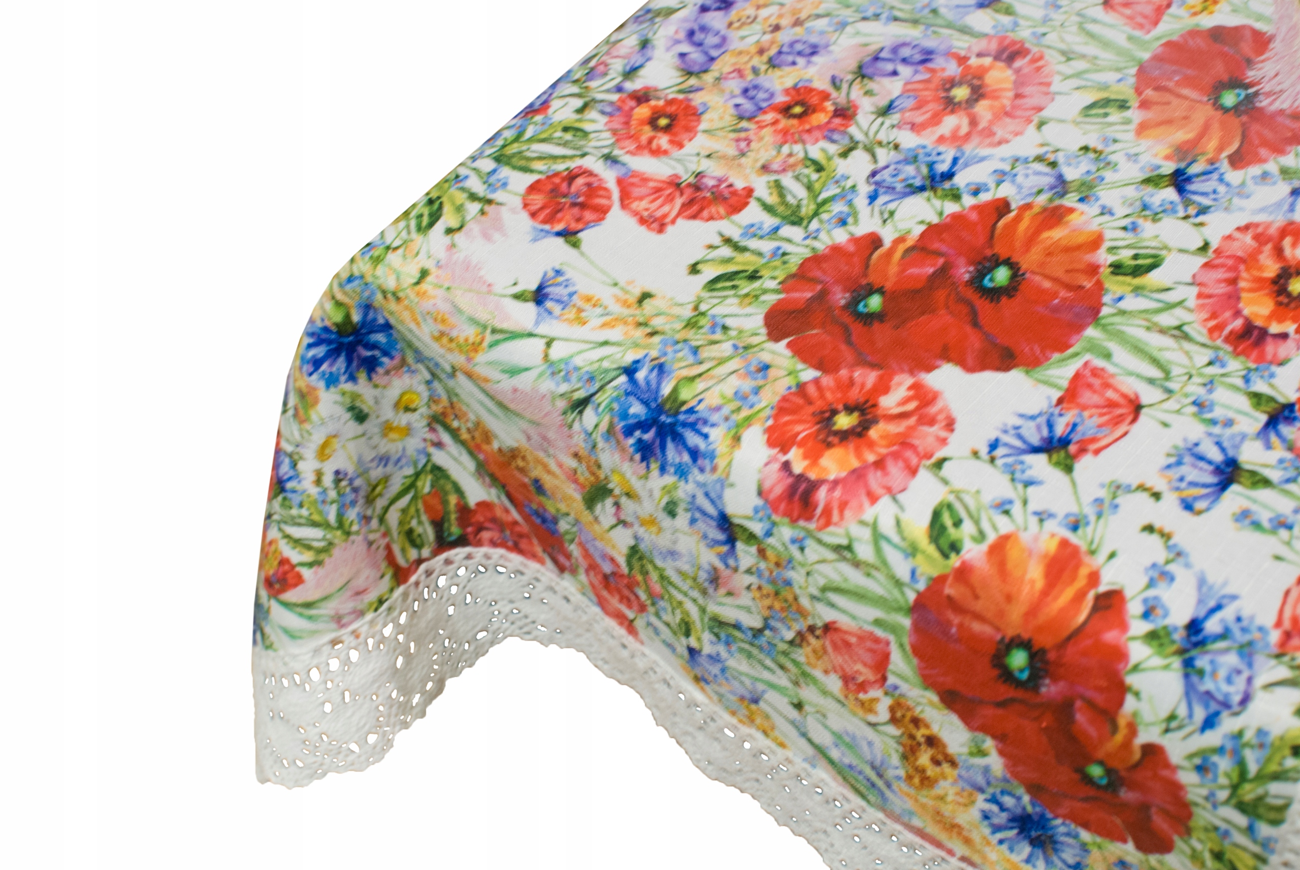 Polna Meadow Prainting Tept с красными маками и кукурузными потоками с кружевом 50x140