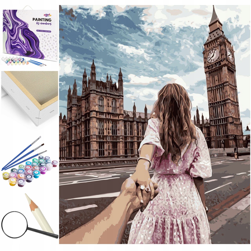 Живопись, установленная числами, девушка ведет руку - Большой Бен 50x40см на деревянном носилках