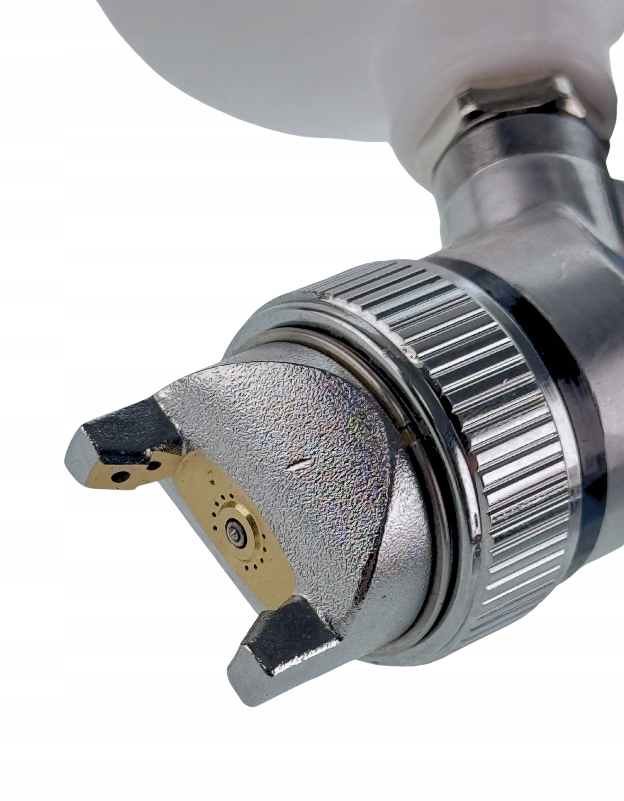 - ручка сбоку на корпусе регулирует количество воздуха, подаваемого в воздушные каналы воздушного сопла; позволяет задать форму струи краски – эллиптическая/плоская