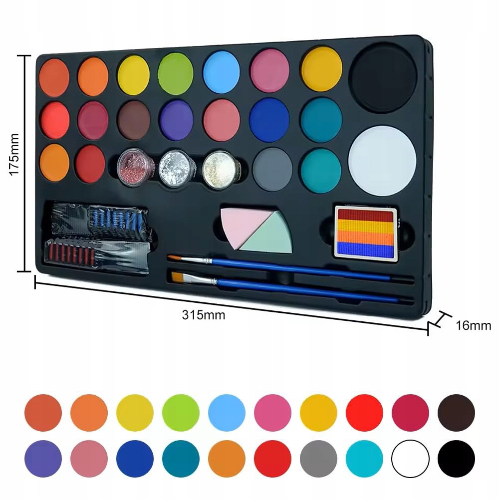 FARBY FARBKI DO MALOWANIA TWARZY CIAŁA SZABLONY ZMYWALNE DLA DZIECI 45PCS
