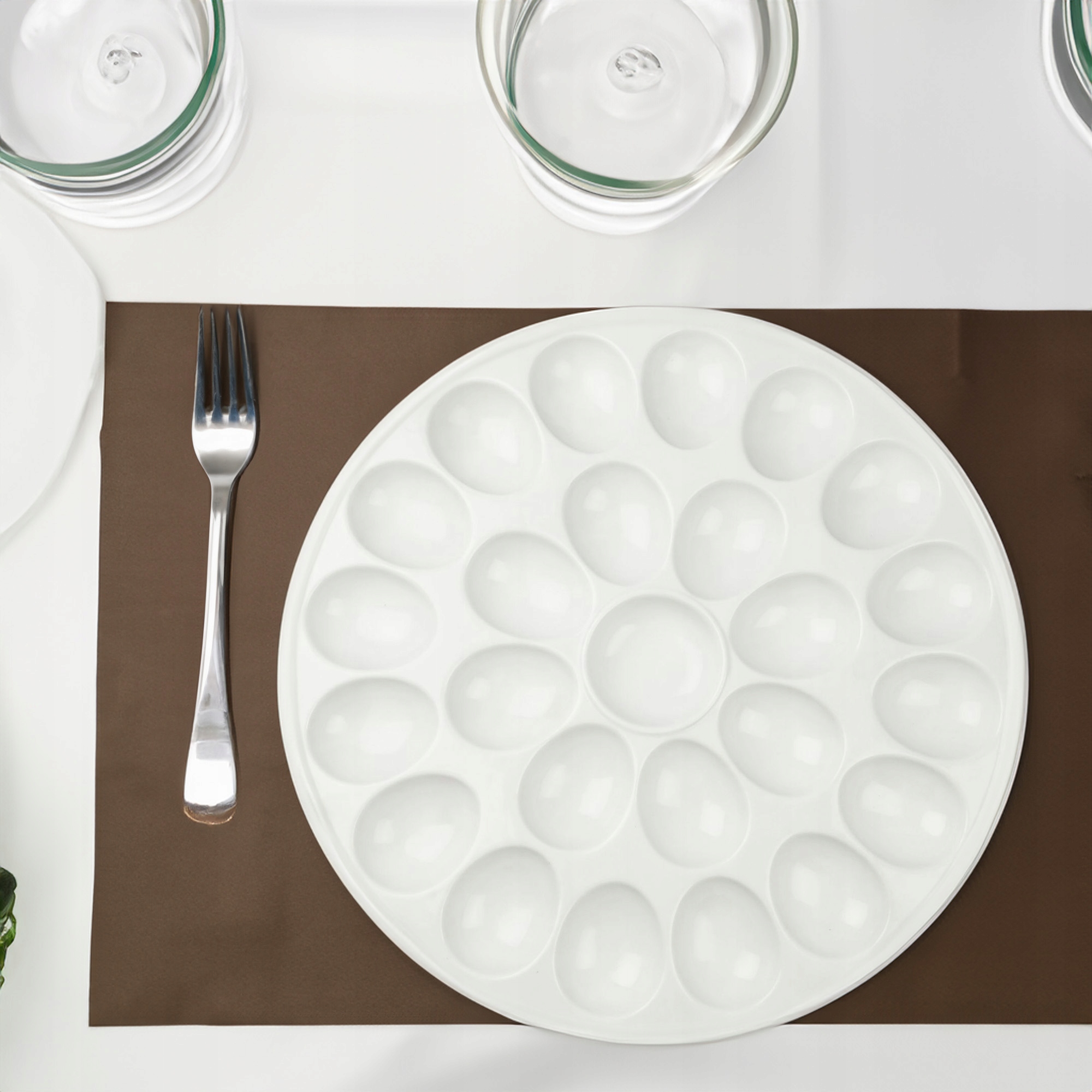 фарфоровая пластина яиц диаметром 33 см является идеальным выбором для людей, которые ценят элегантный , и в то же время функциональный как подавать блюда. Эта тарелка была разработана для эстетической подавать твердые яйца, фаршированные яйца или изысканные закуски . отлично подойдет во время рождественских встреч, семейных ужинов или случайных вечеринок.