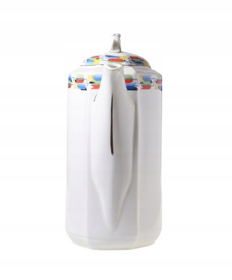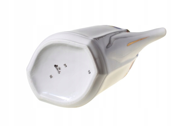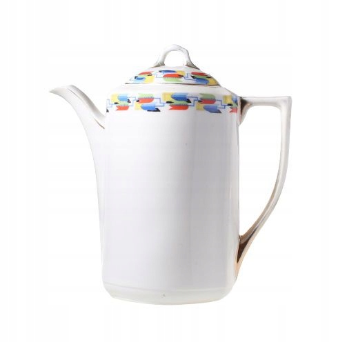 Довоенный фарфоровый кувшин - часть кофейного сервиза. Позолоченный. Он производится на фарфоровом заводе Giesche в Богучице. Форма сосуда и роспись на днище и крышке выполнены в стиле ар-деко. Силезский фарфор 1920-х годов.