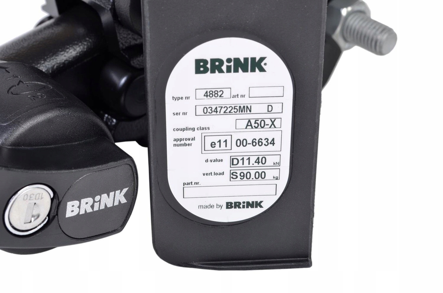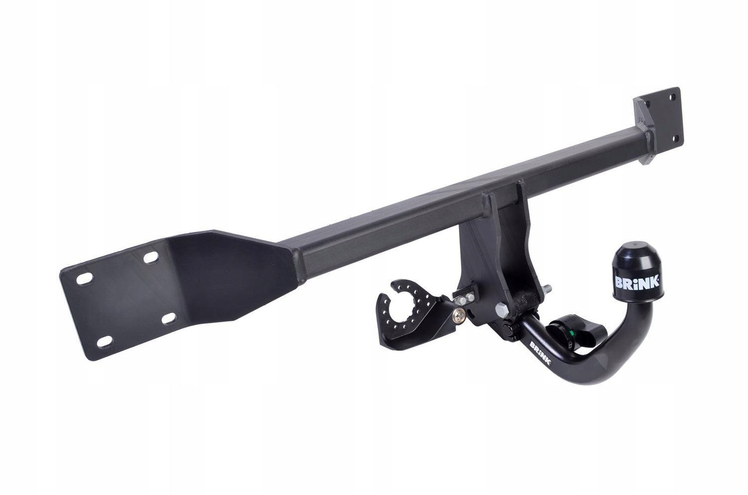 Буксировочный крюк Brink высочайшего качества со съемным по диагонали шариком, запираемым ключом, в комплекте со специальным 13-контактным ремнем безопасности.