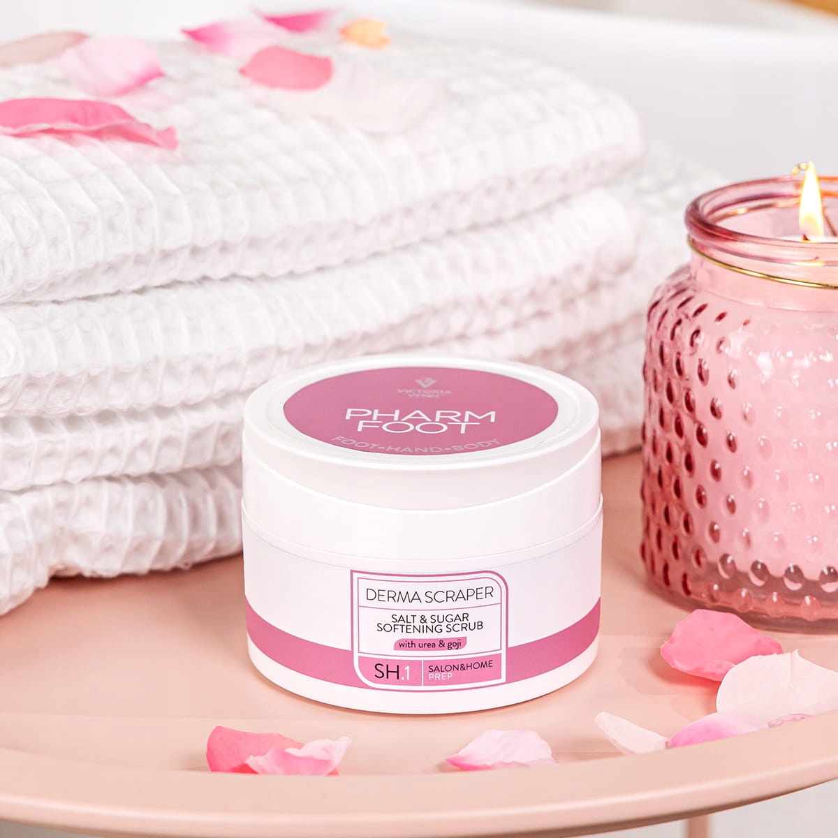 PHARM FOOT DERMA SCRARE СМЯГЧАЮЩИЙ СОЛЯНО-САХАРНЫЙ ПИЛИНГ с мочевиной и экстрактом ягод годжи 200 г⭐⭐⭐⭐⭐