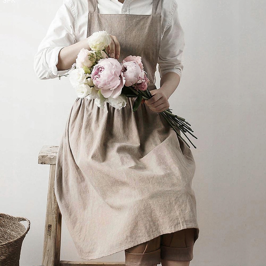 Фартук без рукавов из хлопка и льна, кухонный фартук для приготовления пищи, выпечки, противообрастающий фартук, бежевый