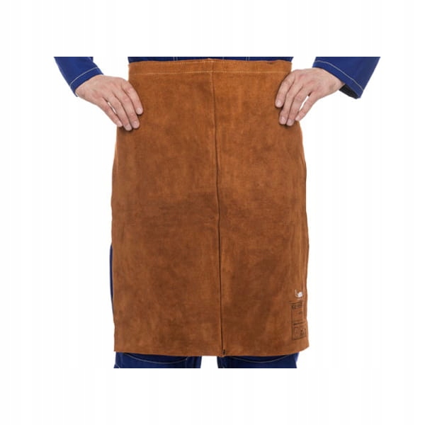 Кожаный сварочный фартук с ремнем для защиты от заноз, изготовлен из спилка коровьей кожи, прошит плетеной ниткой KEVLAR®, производитель: Weldas, код товара: 44-7124.