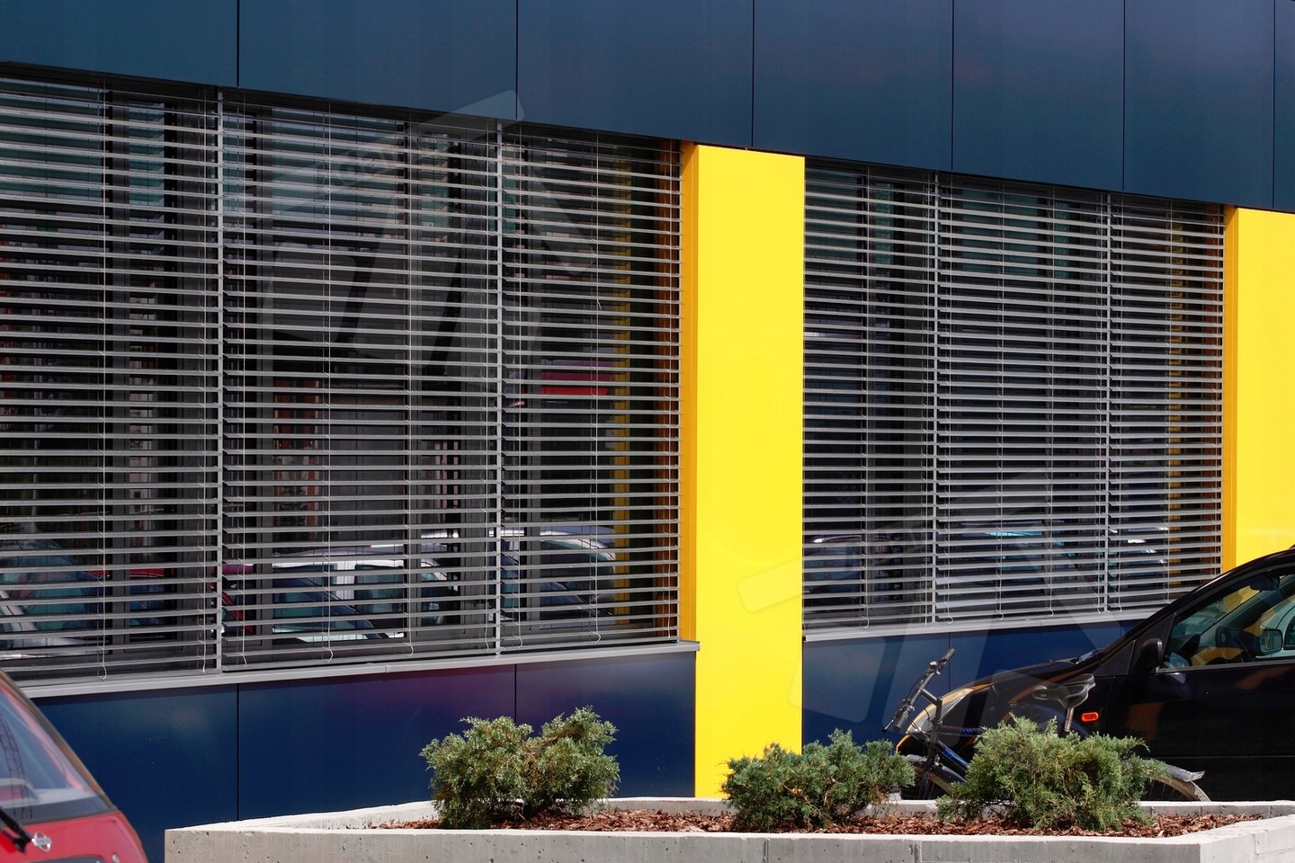 фасадные жалюзи изготовлены из алюминия и окрашены в технику порошка в нескольких стандартных цветах. Цвет ламеллы может быть одинаковым по отношению к структуре или полностью отличался от нее (это только отдельное вещество в соответствии с предпочтениями клиента). Ламели жалюзи прикреплены к жалюзи с использованием специального текстиля (лестницы). Их цвет автоматически выбирается в качестве цвета ламеллы. Шаблон Lamella ниже: