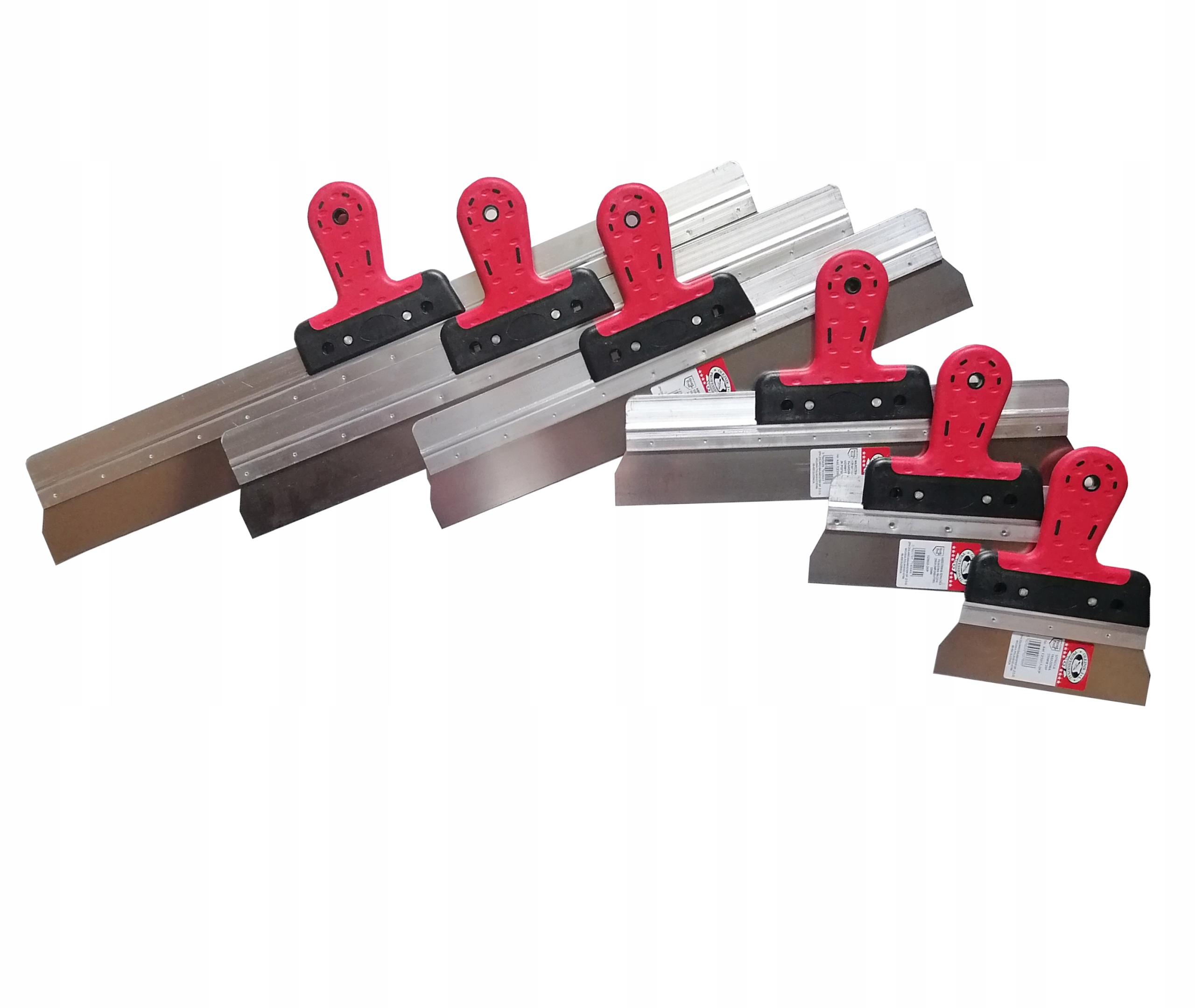 Лопатка фасадной шпаклевки «Олейник» изготовлена из гибкой нержавеющей стали, армирована алюминиевым профилем по всей длине. Использование армирования делает полотно устойчиво и жестко закрепленным, что позволяет равномерно и плавно наносить раствор с помощью фасадной шпаклевки.