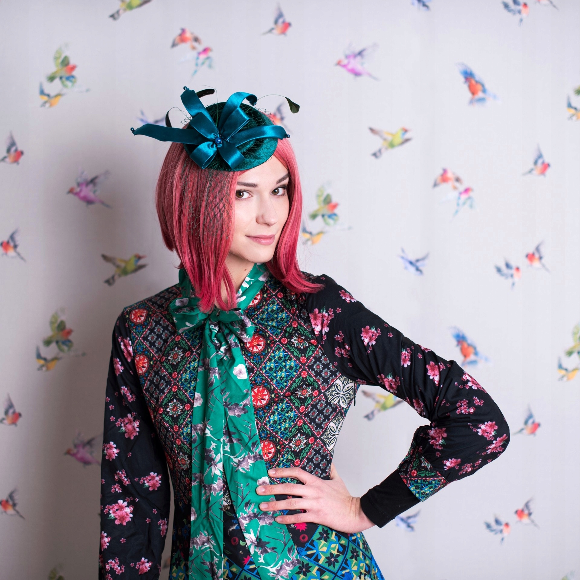 Fascynator z Woalką Kokardą Perełkami Spinka Toczek Weselny Elegancki