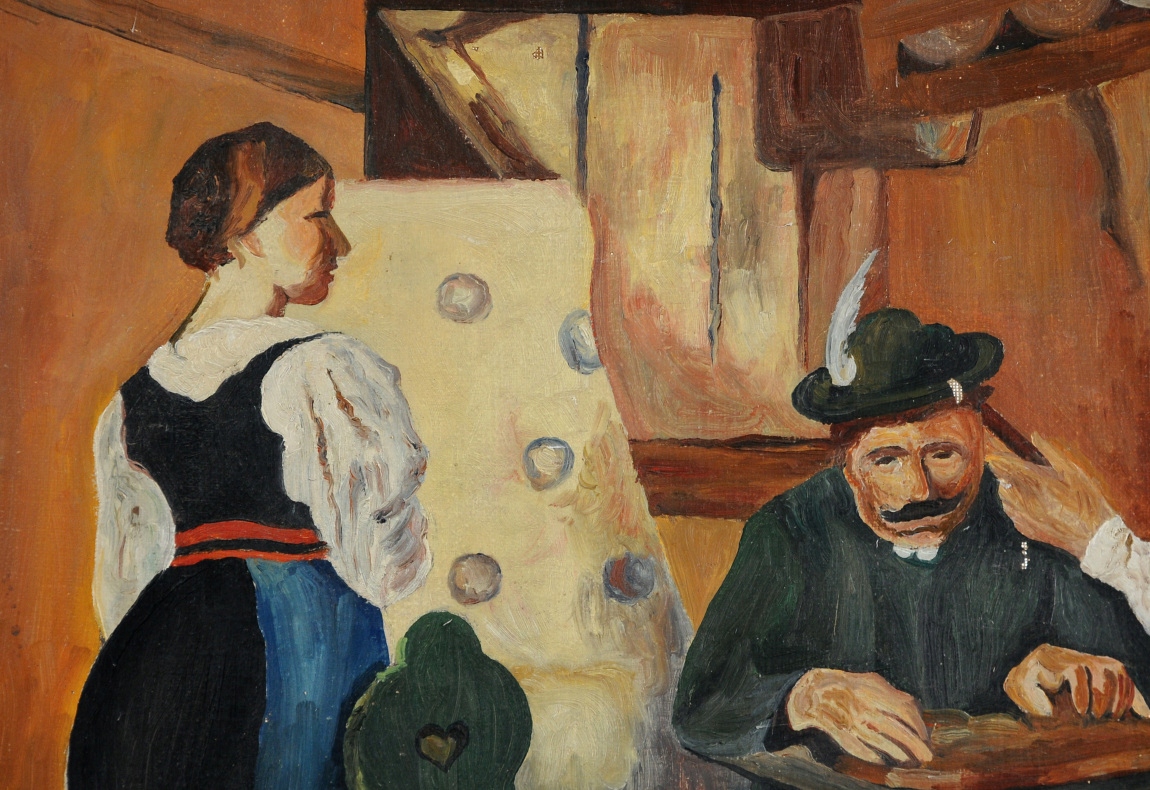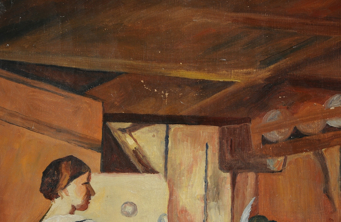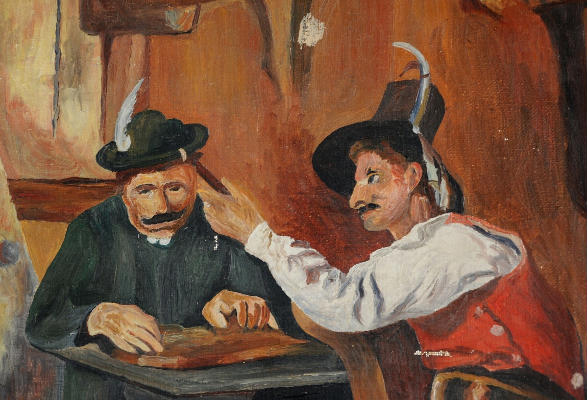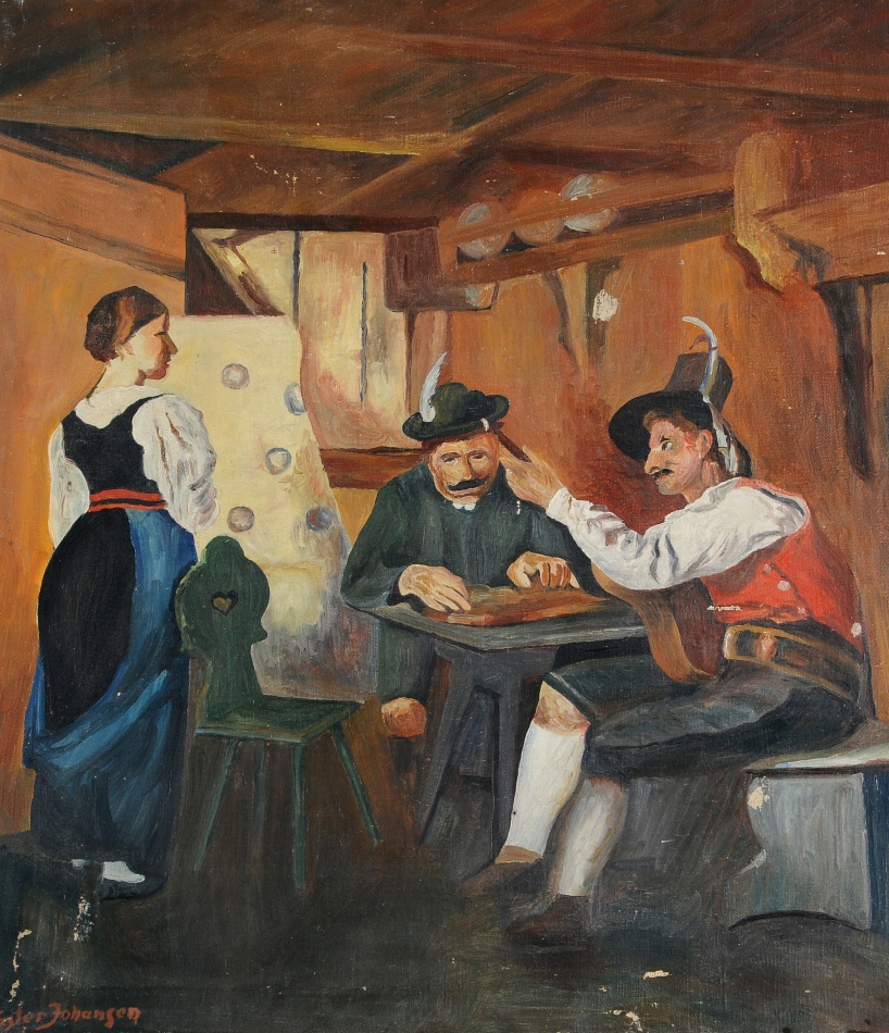 БЫСТРЕЕ ЙОХАНСЕН ОБЩАЯ СЦЕНА СТАРАЯ КАРТИНА МАСЛОМ