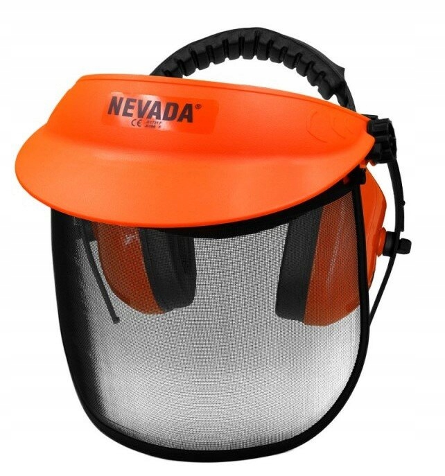 Покрытие лица Невады предназначено для защиты пользователей, особенно в случае садоводства и лесной работы. Рекомендуется все время носить крышку в области опасности. Рама, удерживая крышку на головке пользователя, имеет возможность отрегулировать цепь, используя винт, расположенный сзади и глубину. Постановление на голове с ремешком с отверстиями в верхней части. Боковые винты используются для регулировки силы, необходимой для установки волейбола в желаемом положении. Лицевая крышка с защитниками слуха из стальной сетки. Продукт используется во время работы с Scythe, подфактором или пилой внутреннего сгорания. Сертификаты: CE, F (45 м/с) (обложка), EN1731 (кадр и сетка), EN166 (кадр), EN352-1: 2002 (ушные прокладки).