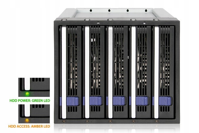 - Совместимые диски: 5 x 3,5 дюйма SATA I/ II / III 6 Гбит/с