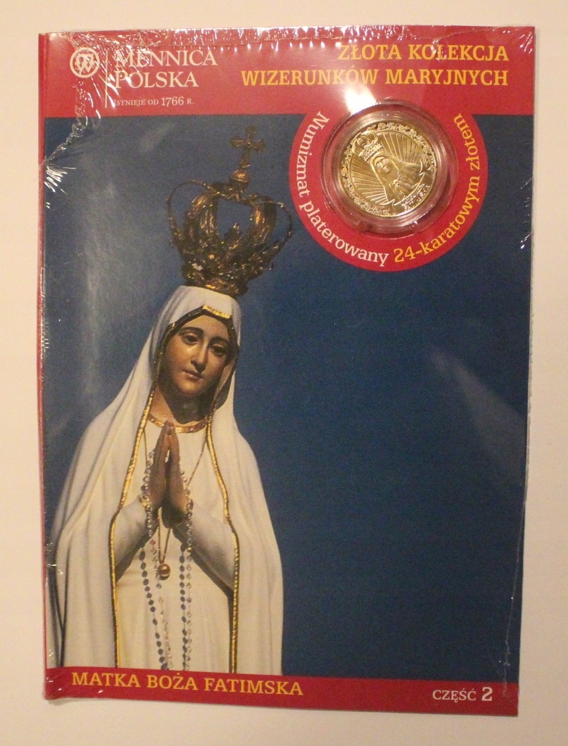я приглашаю вас купить нумизм из 24 -каратного золота в «Золотой коллекции изображений Мариан» - Богоматерь Фатима (2), диаметр 27 мм, сертификат, оригинальная фольга + молитва Богоматери Фатимы. Numismat происходит из моей частной коллекции. Состояние видимо на фото.