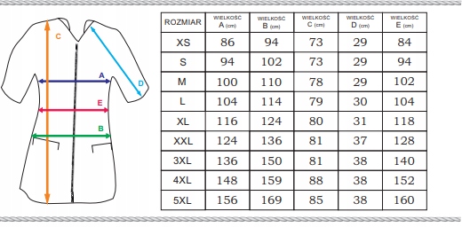 Фартук застегивается на молнию того же цвета, что и отделка. . Рукав доходит до локтя, весь фартук длиной до середины бедра.