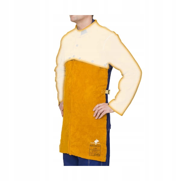 Кожаный фартук для сварки Golden Brown™ WELDAS, прикрепленный к болеро кнопками. Изготовлен из спилока коровьей кожи. Швы прошиты очень прочным, термостойким материалом. температуры с помощью 3-кратно оплетенной нити KEVLAR®. Дополнительно вшит регулируемый ремешок. застегнуть сзади на спине. Все заклепки и защелки изолированы. электрический.