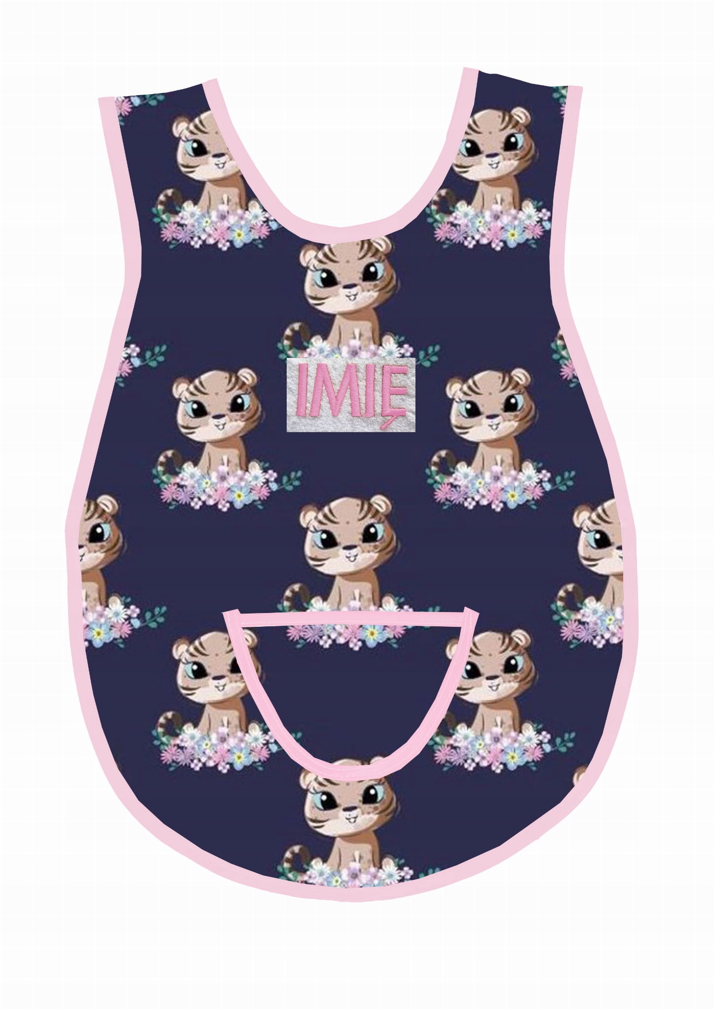 Фартук детский садовый с тиграми в цветах, фон темно-синий, модель 1570