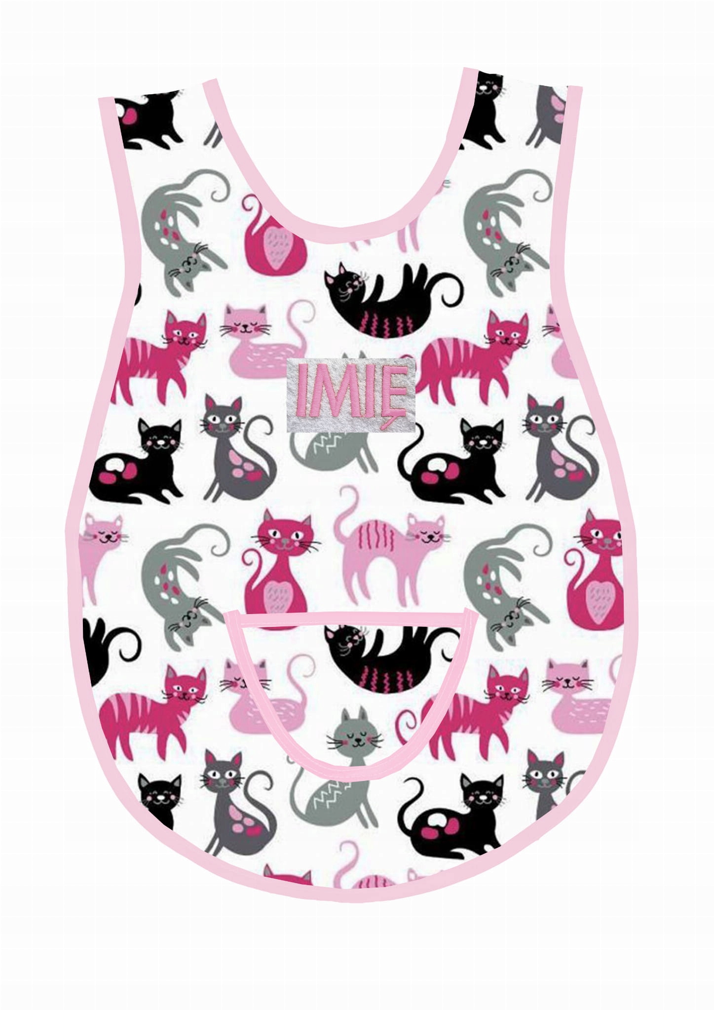 Фартук для детского сада с веселыми розовыми котятами и белым фоном wz 813