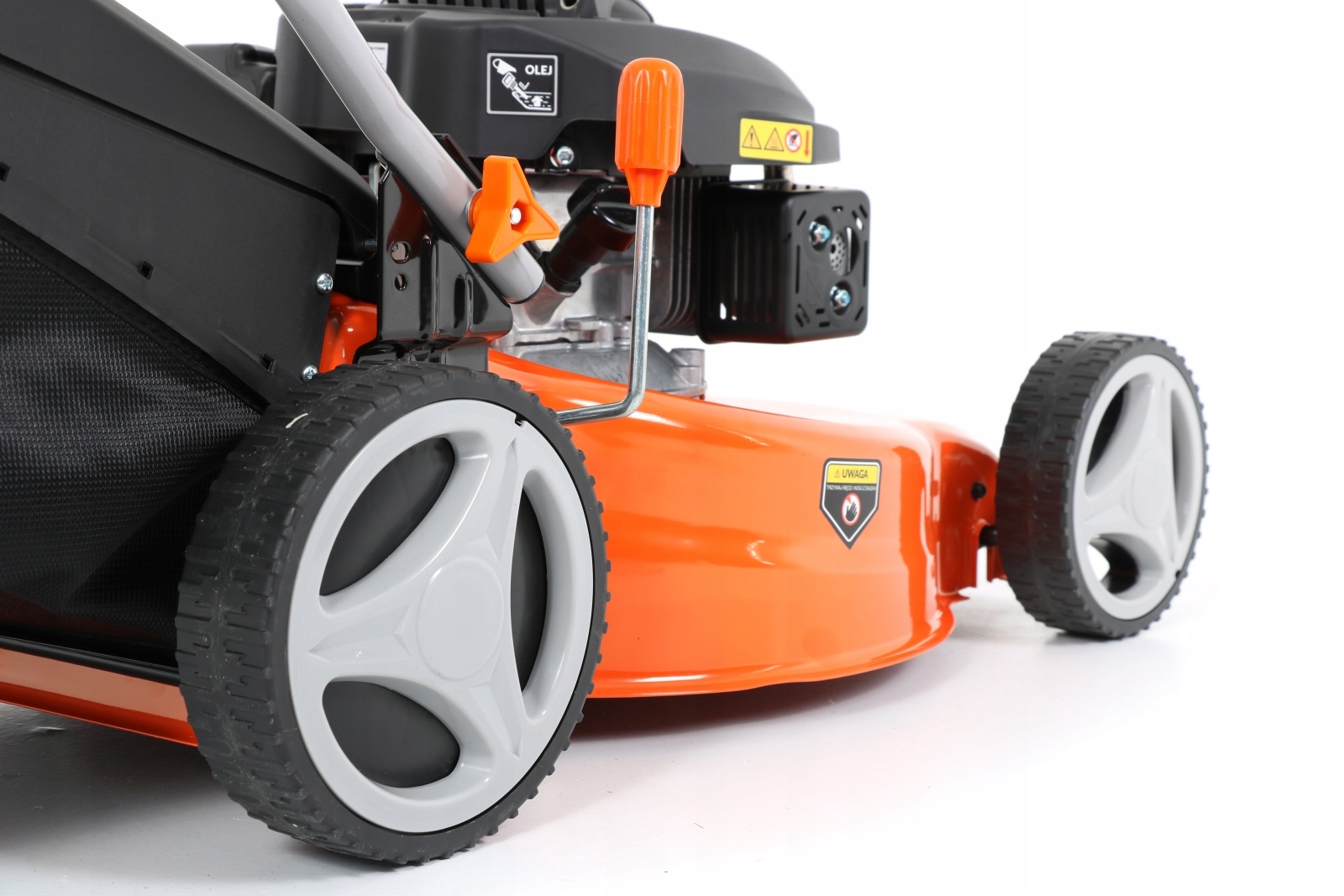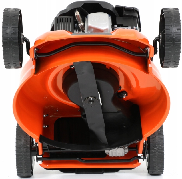 Аппарат также оснащен центральной системой высоты стрижки на нескольких уровнях (всего от 25 до 75 мм), регулируемой с помощью рычага – это позволяет добиться идеальной стрижки газона даже на неровных поверхностях. Высокий комфорт работы с этой моделью бензиновой косилки обеспечивается также шириной захвата 46 см и вместительной 55-литровой корзиной, в которую можно собирать скошенную траву. во время кошения.