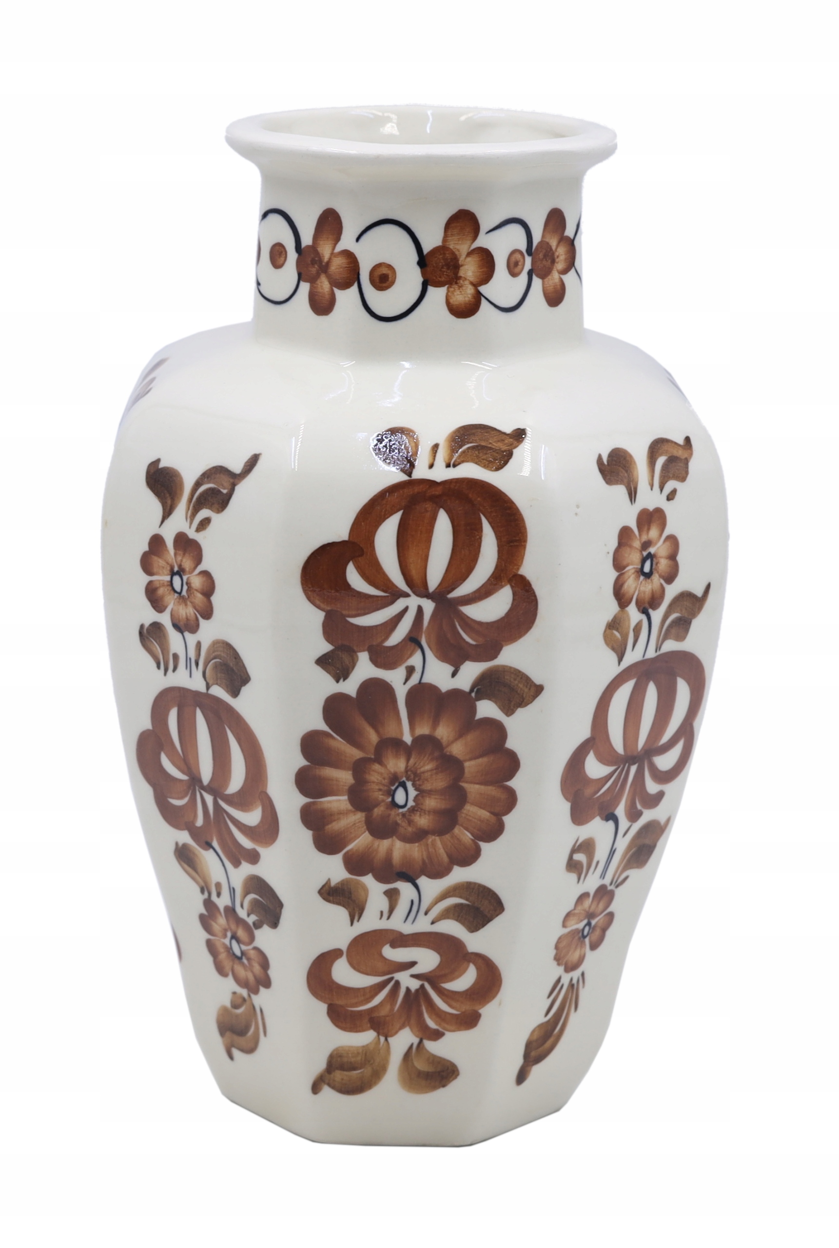 Фаянсовая ваза из Влоцлавека, 1980-е годы. Подписано. Ручная роспись М. Новицкой. Размеры; высота 24 см. Следы использования, производственный брак, возникший в процессе обжига, виден на фото. Рекомендую коллекционерам