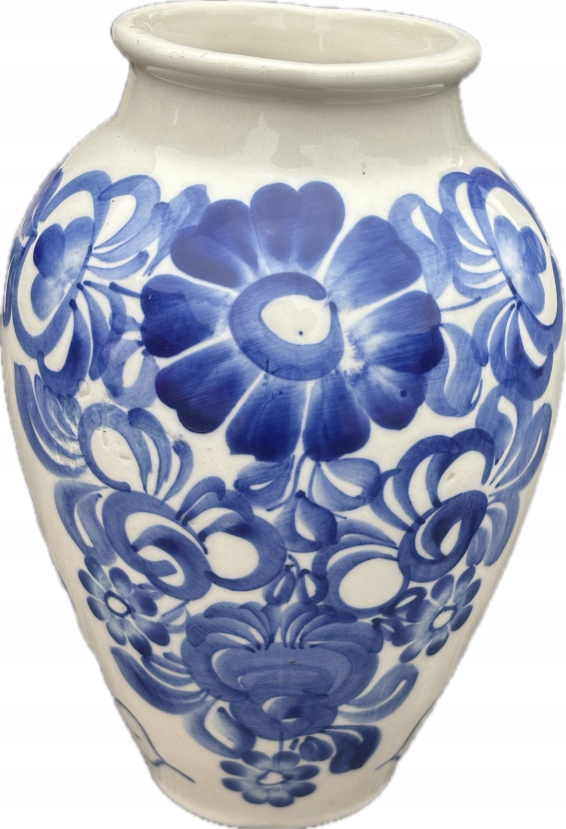 Фаянсовая ваза из Влоцлавека 1970-1980-х годов. Подписано. Ручная роспись. Незначительные производственные дефекты эмали, незначительные следы использования. Состояние вазы показано на фотографиях. Размеры; высота 19 см х 13 см.